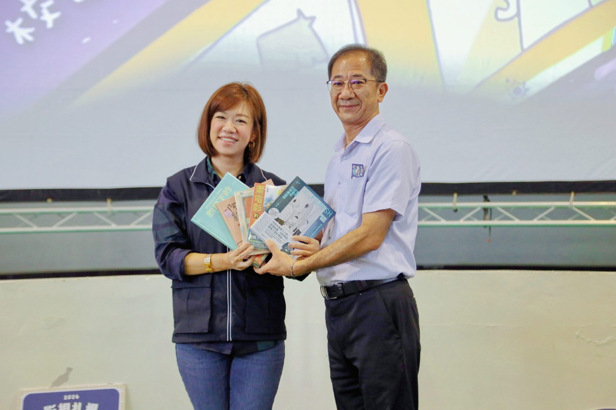 昨日巡迴活動,新聞局長欒治誼、台中市立啟聰學校校長蔡明郡、家長會長吳思怡、輔導家長會長吳以晴均到場與同學相見歡。