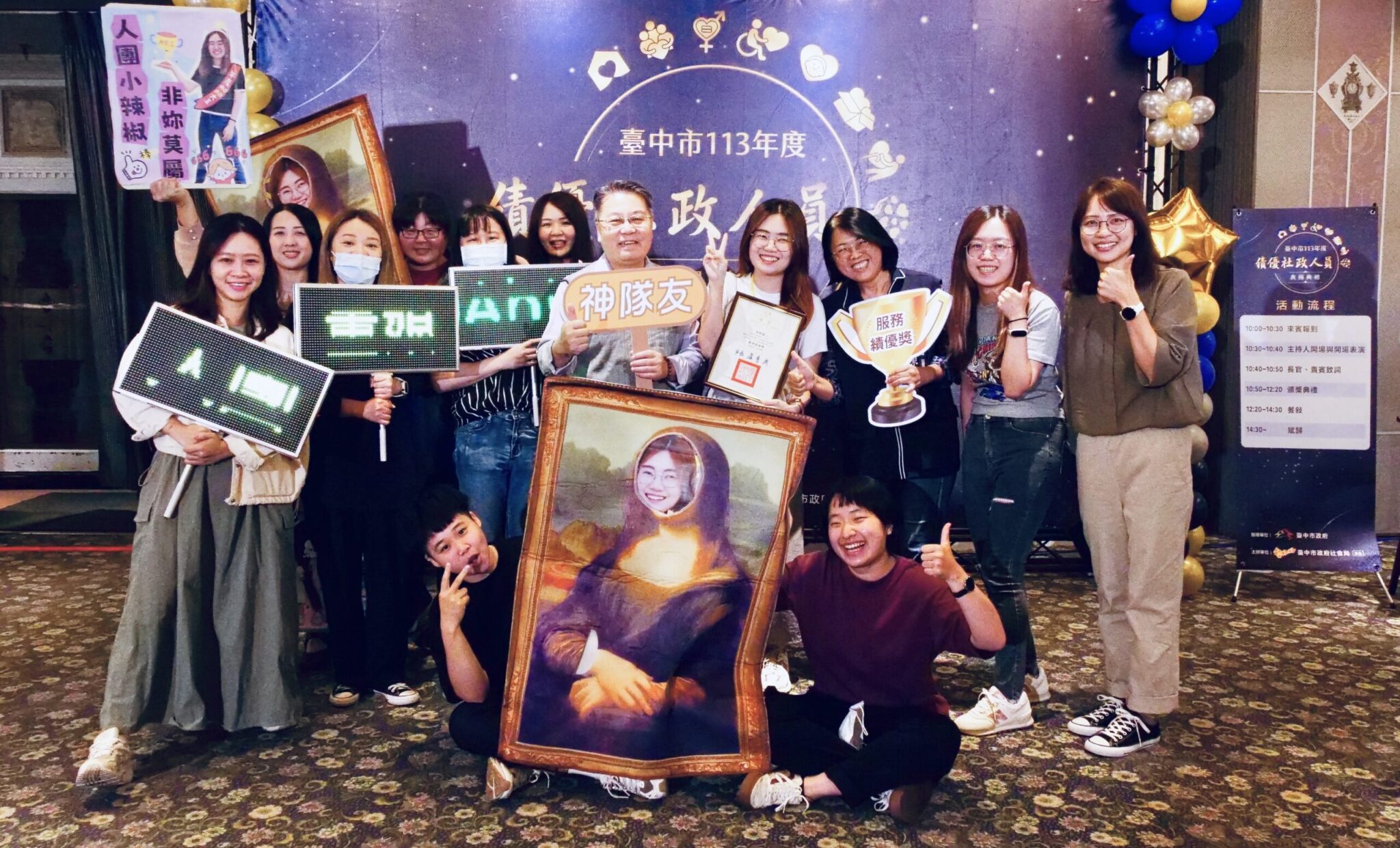 台中市政府社會局今(7)日舉行113年度績優社政人員表揚典禮,表揚136位績優社政人員及36家評鑑優等社福團體,其中,資深敬業服務獎(年資達10年)48名、服務績優獎(服務3年以上)88名。社會局局長廖靜芝代表市長盧秀燕出席,感謝社政人員和社福團體努力,共同攜手營造更美好的台中市。
