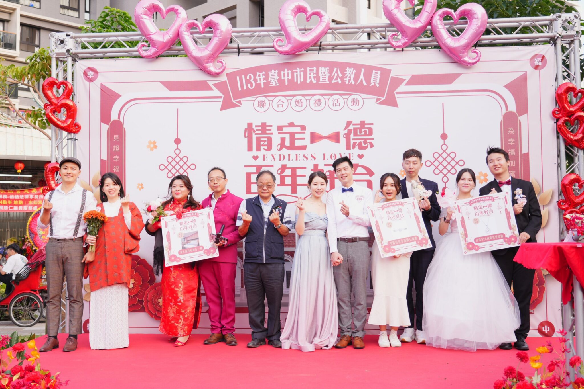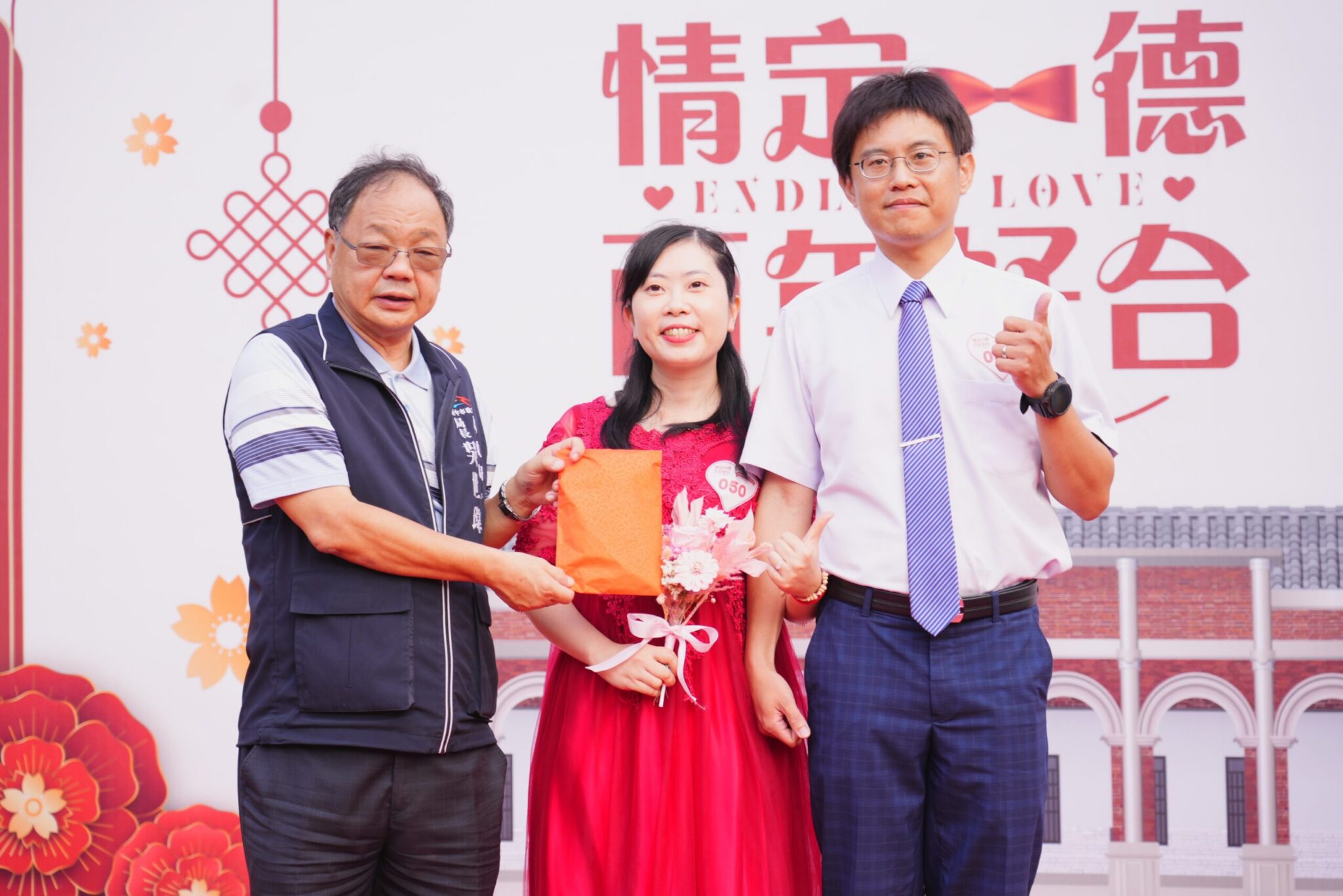 吳局長指出,今年聯合婚禮百對新人中不乏相識淵源特殊的佳偶,其中有1對新人今年參加市府舉辦的單身聯誼活動邂逅彼此,決定牽手共度未來,並參與今年的聯合婚禮,人生的關鍵時刻都由市府促成,更顯意義不凡。吳局長也履行承諾,凡參與市府聯誼活動進而參加聯合婚禮者,可獲贈1萬元紅包,該對新人驚喜收下賀禮,並感謝市府讓他們有機會相識、相戀、互許終身。