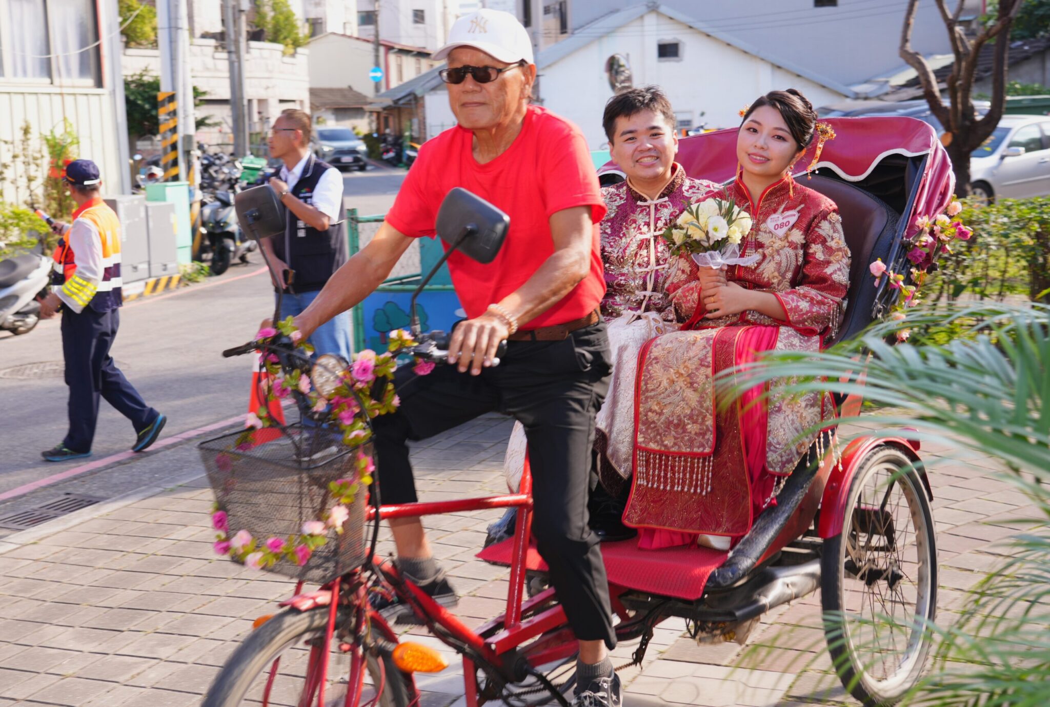 民政局長吳世瑋說明,台中市聯合婚禮辦出好口碑,結合台中市在地文化觀光推動,搭配各式主題、情境,每年都成為新人關注焦點,今年恰逢歷史建築一德洋樓滿百年,市府結合花藝、氣球、黃包車等元素,打造專屬浪漫復古戶外婚禮,並特別安排復古黃包車帶領新人繞行一德公園後,再至婚禮拱門處進場,祝福新人 「情定一德、百年好合」。