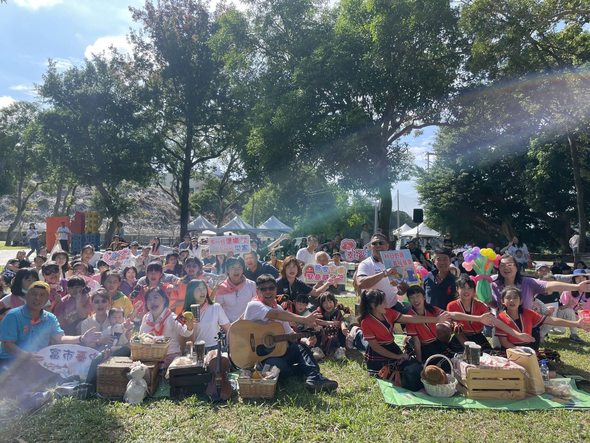 隨著颱風遠颺,2024市民野餐日活動今(10)日在台中市29個行政區串連盛大舉行,法制局攜手潭子區公所在聚興社區場休憩域辦理潭趣歡樂音樂派對,法制局李善植局長與潭子區公所劉汶軒區長一同到場與在地市民朋友同樂,享受一日輕盈音樂與樂活的野餐時光。