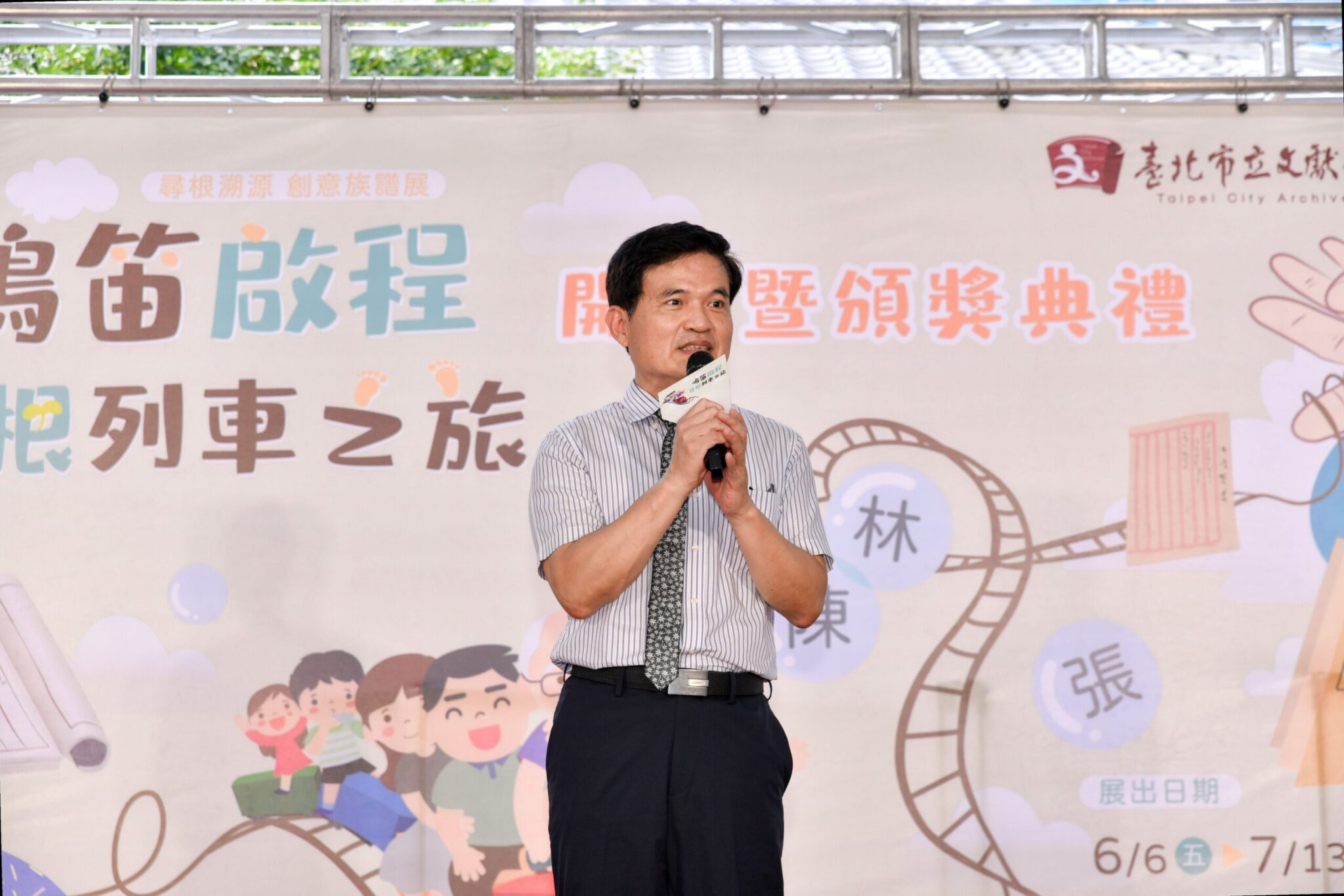 臺北市立文獻館館長鄧文宗表示,文獻館致力於保存臺北市的歷史,認識國家要從歷史,而認識家庭就可以透過族譜,現今雖是小家庭型態,但個人可以從祖父母一代追溯,了解我從何而來?如何遷移來到此處。透過創意族譜設計,讓大家更認識族譜,謝謝大小朋友參與,提供嶄新創意的作品。