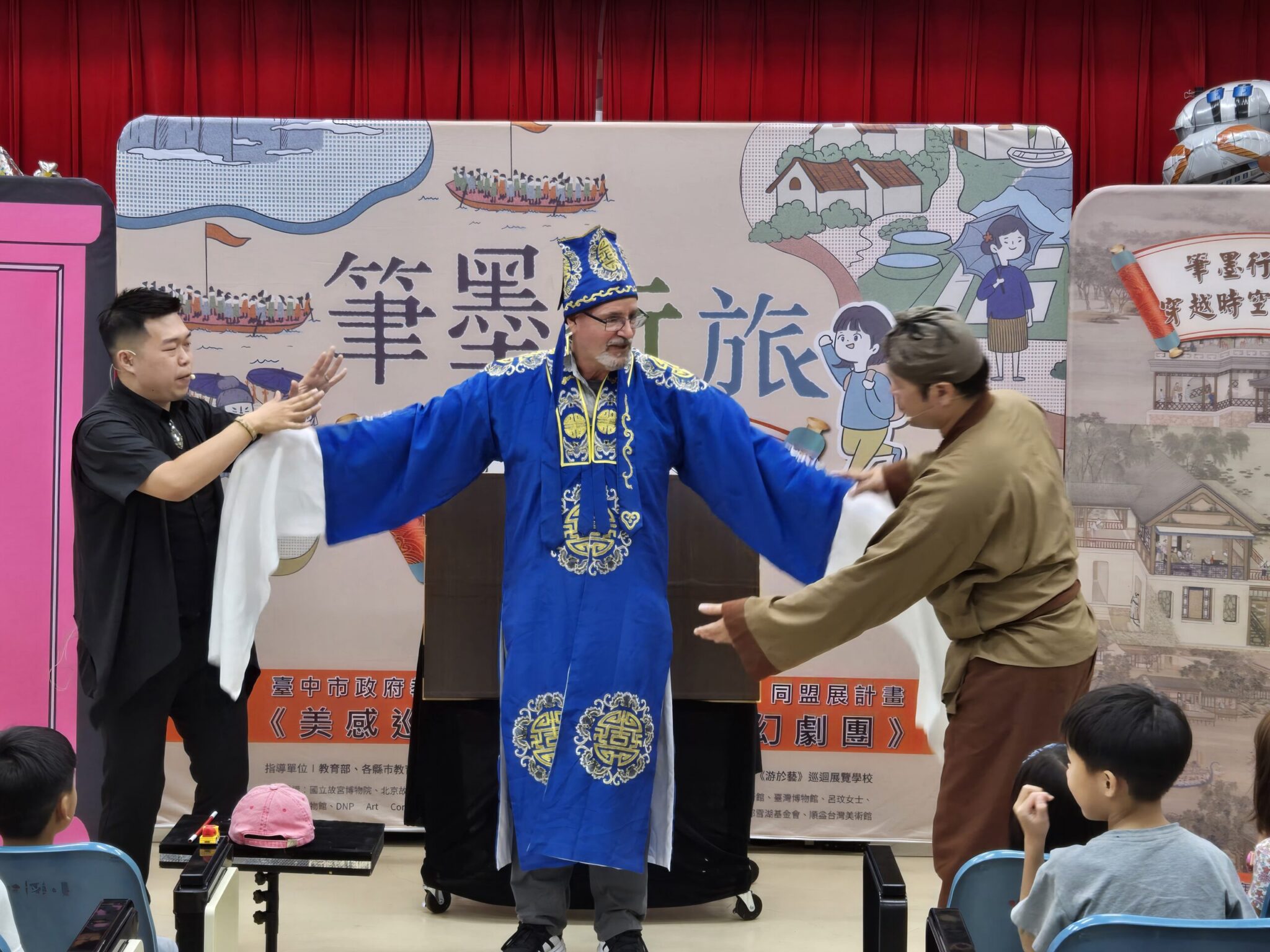 教育局指出,114年度的《游於藝-巡演列車》以「筆墨行旅──在東方文明中旅行」為主題,攜手迷思魔幻劇團打造專屬演出,精心編導、量身設計,結合藝術賞析與魔術表演,帶領學生展開一場穿越古今、融合想像的文化之旅。
