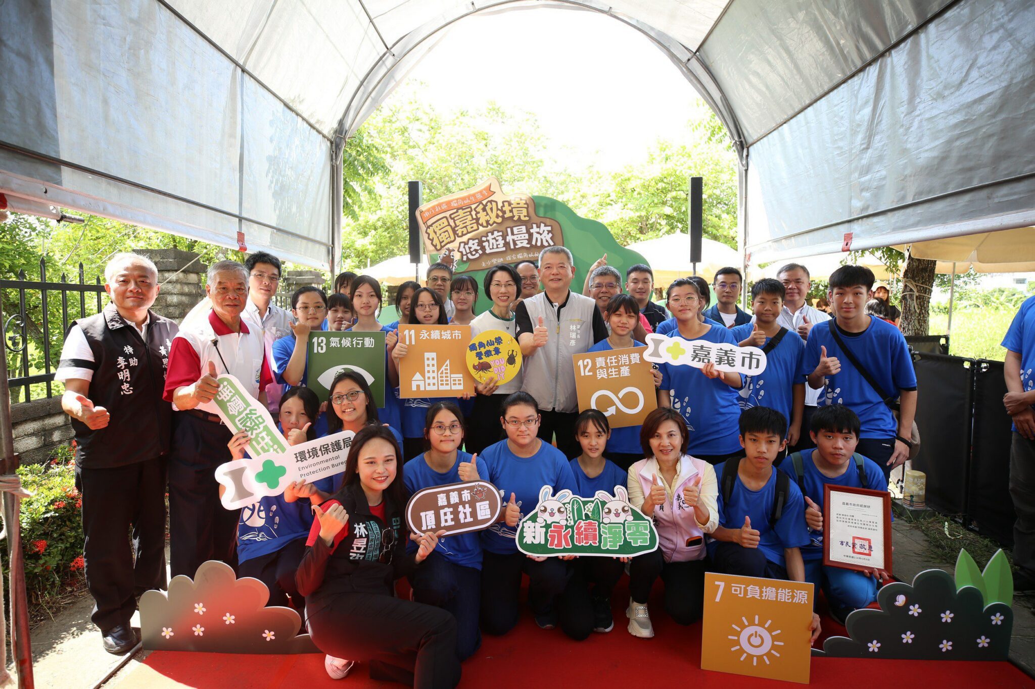 一年一度頂庄里獨角仙季於今(8)日隆重登場,由嘉義市副市長林瑞彥、頂庄里莊天基里長及眾多貴賓,共同揭開一年一度獨角仙生態季,現場除了有低碳市集、手作DIY體驗及音樂表演外,也規劃由小朋友擔任導覽員於現場進行獨角仙生態解說,讓小朋友牽起大朋友的手,一起欣賞頂庄生態之美。