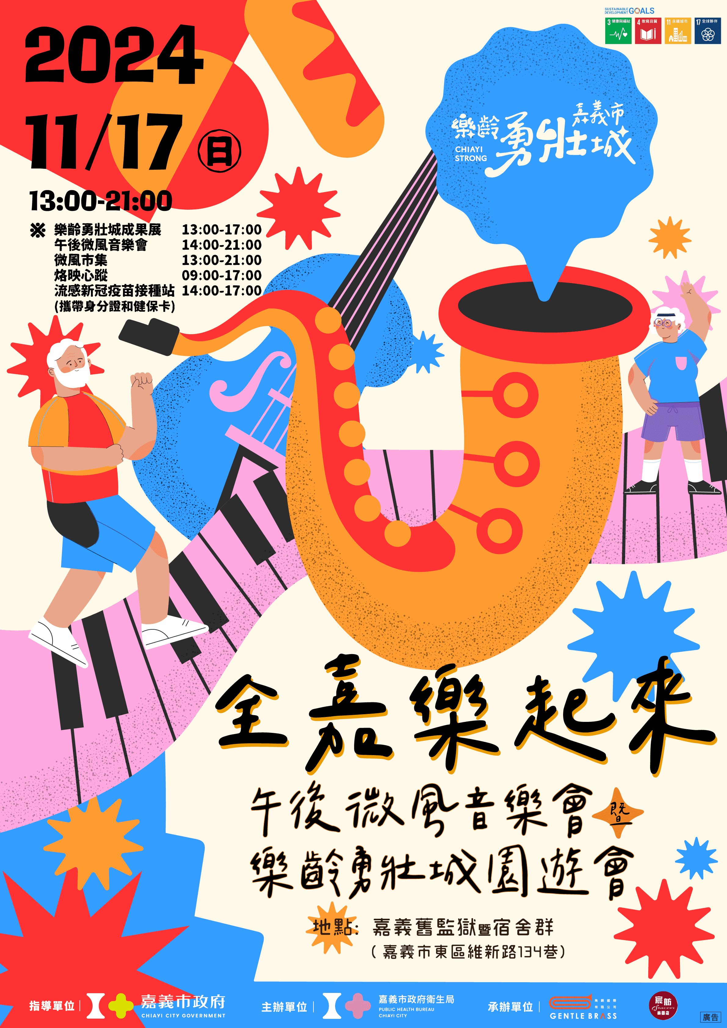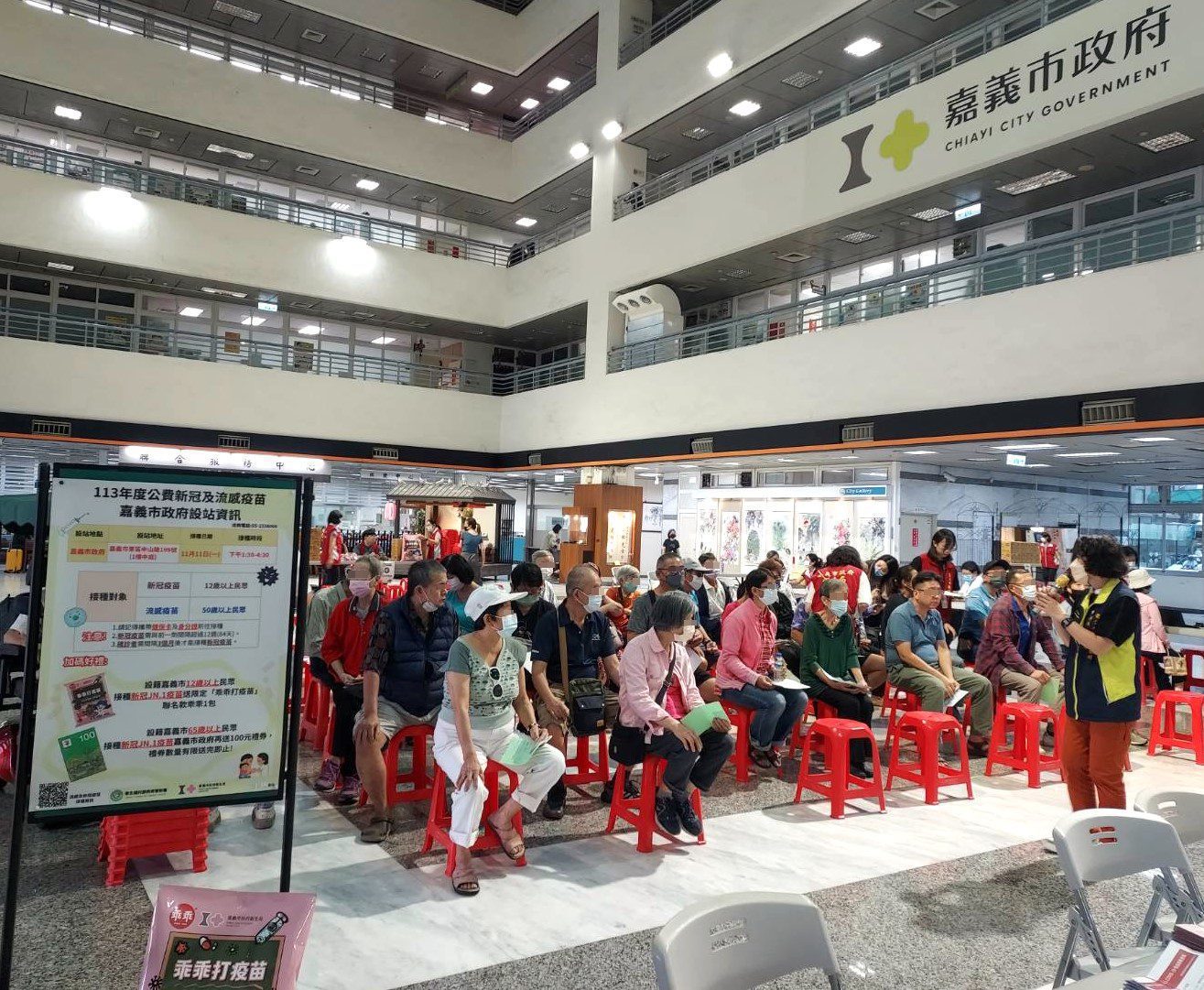 自11月1日起流感及新冠疫苗開放第二階段對象接種,50歲以上民眾可接種公費流感疫苗,滿6個月以上民眾可接種新冠JN.1疫苗,隨著時序入冬,已進入呼吸道病毒活躍時期,為提升民眾保護力,降低感染後發生重症和死亡風險,嘉義市政府衛生局於11月17日星期日下午2時至5時在舊監獄實驗木場 (嘉義市東區維新路134巷)設置社區接種站,提供新冠和流感疫苗接種服務,當天衛生局也舉辦樂齡勇壯城全嘉樂起來一系列活動,民眾除接種疫苗外,亦可逛逛市集和聆聽音樂會。凡在此場接種站完成新冠疫苗接種之嘉義市市民,可獲得嘉義市限定「乖乖打疫苗」聯名款乖乖1包,另65歲以上之嘉義市市民接種新冠疫苗可再獲得100元禮券。請民眾把握機會,攜帶身分證及健保卡前往接種流感和新冠疫苗。