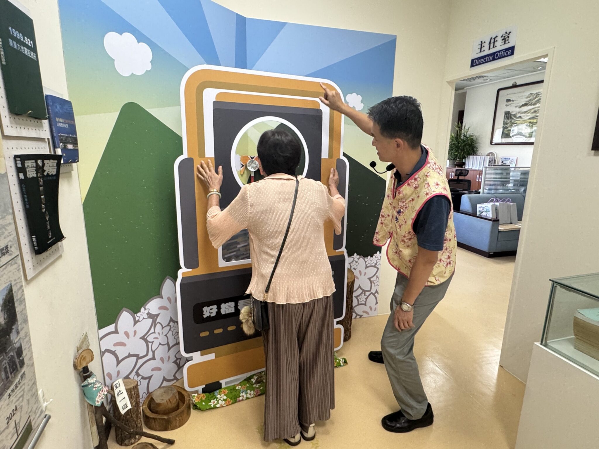 陳主任指出,吸睛的作品包括20位東勢、新盛、中山國小學童繪製地政事務所工作內容、辦公環境作成「童畫地政大小事」繪本及山城圖板互動區,充滿童趣的畫風在展區顯得格外有戲。還有世界最大土地界樁、經緯儀鏡頭板、仿谷關七雄三角點與教你看懂土地登記簿的熊猴(台語音)看登記簿,更出現了打卡排隊的人龍。