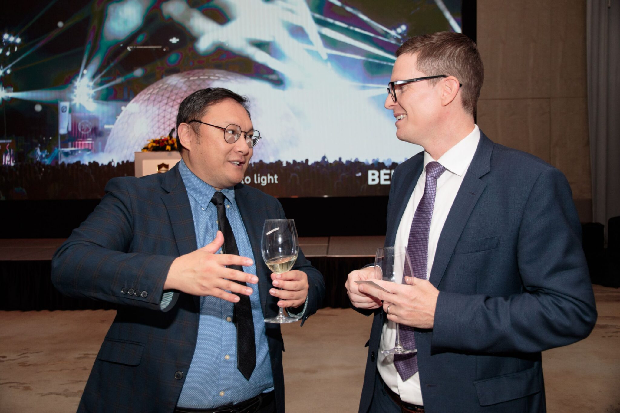 台中市副市長鄭照新應邀代表市長盧秀燕出席致賀,與主持活動的馬徹處長熱絡互動。鄭副市長表示,台中市政府與比利時台北辦事處情誼深厚,今年盧市長特別邀請馬徹處長參與台中購物節比利時篇宣傳廣告拍攝,播出後獲熱烈迴響,因此到場祝賀,順道跟馬徹代表致謝及報告行銷成果,也盼持續深化雙方交流合作。