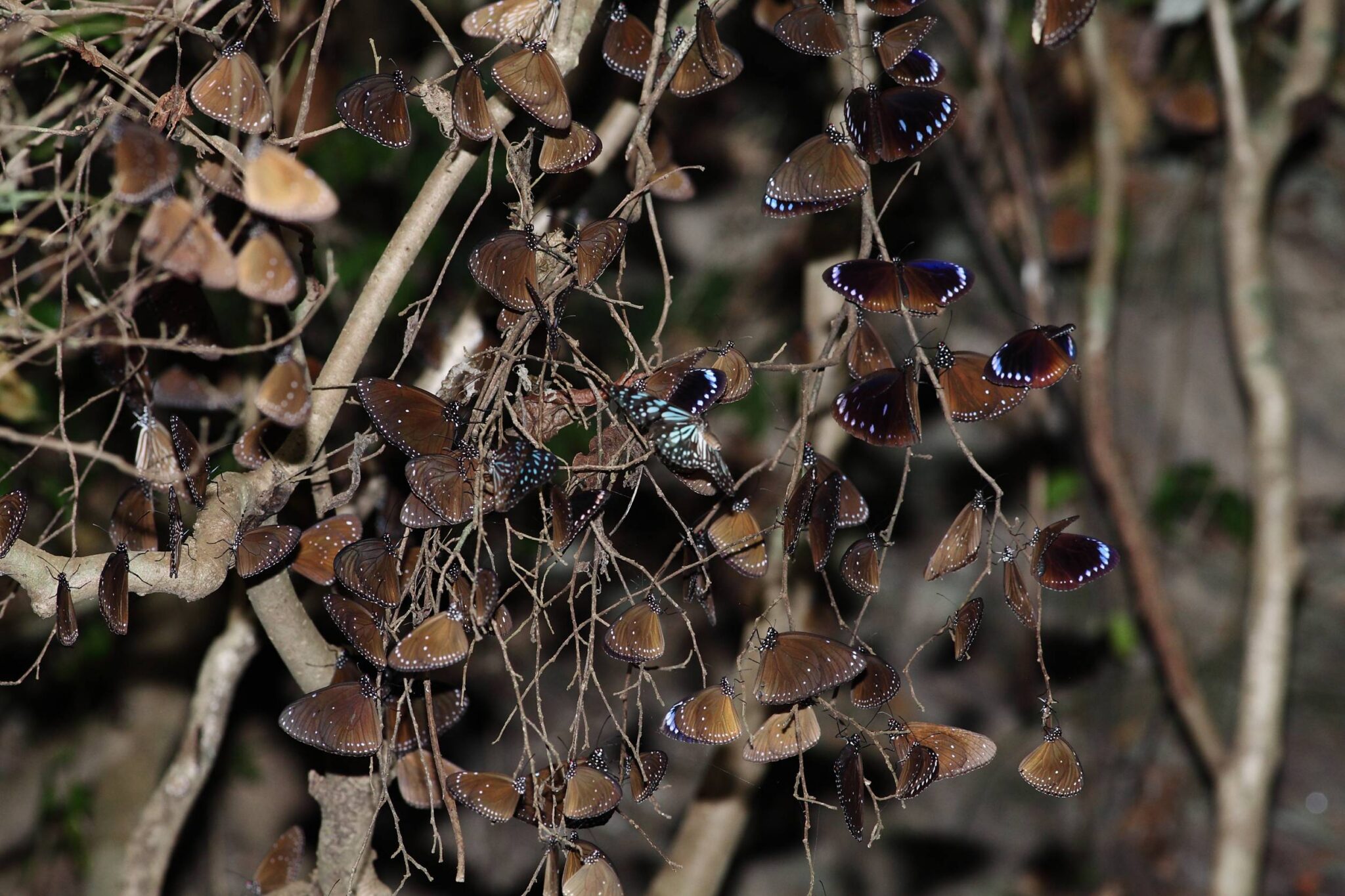 圖說:紫蝶群聚飛舞的生態奇觀讓首次看到的荷蘭籍遊客驚呼連發。(茂管處提供)