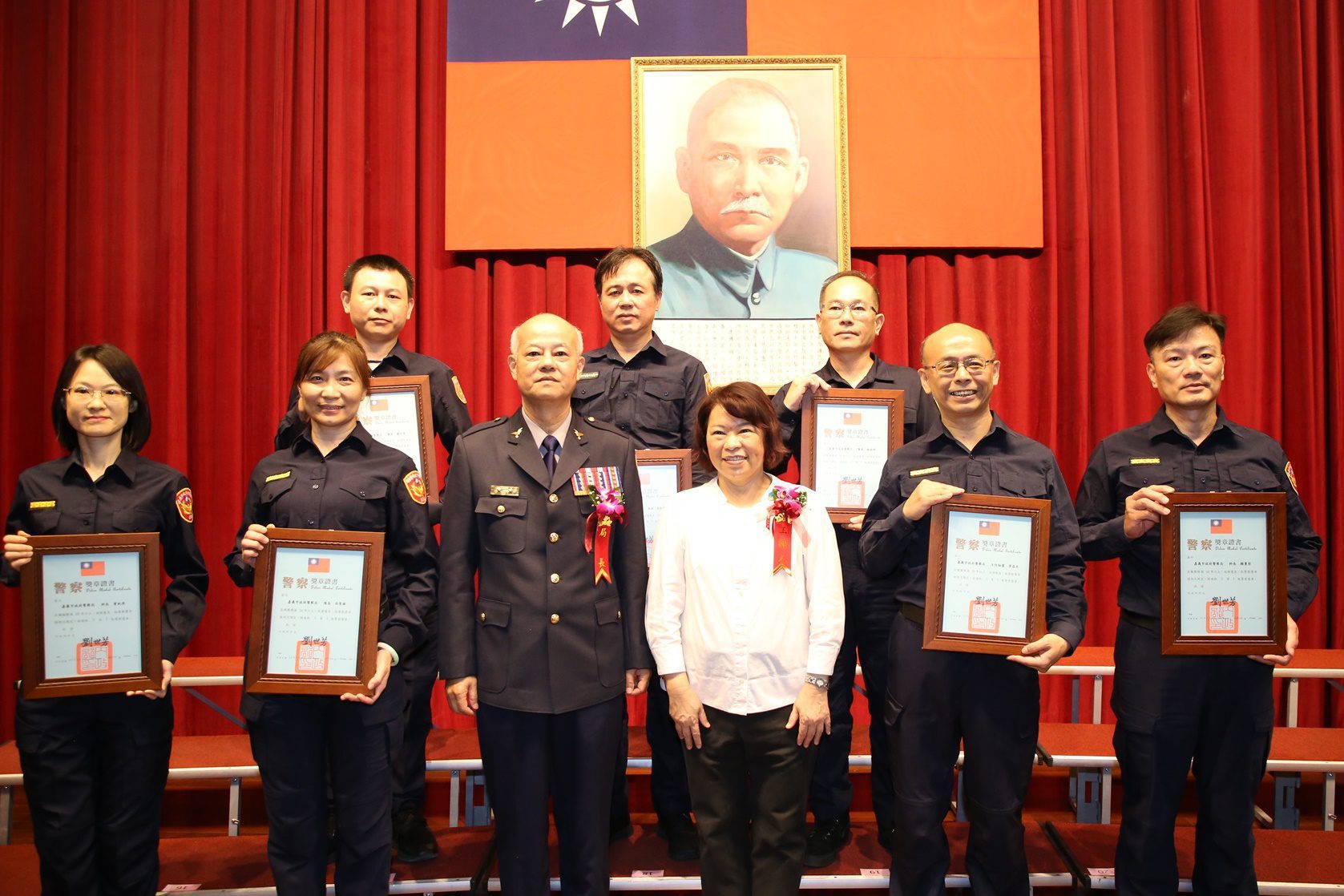 每年6月15日警察節是人民保母的重要節日,嘉市警局為歡慶警察節,於今(9)日舉辦慶祝大會,由市長黃敏惠、多位議員與地方各界人士出席與會,會中揭幕「警察願景館」及「互動式情境模擬訓練靶場」,同時表揚模範警察、資深績優員警、績優協勤民力與志工,肯定員警們的辛勤付出。