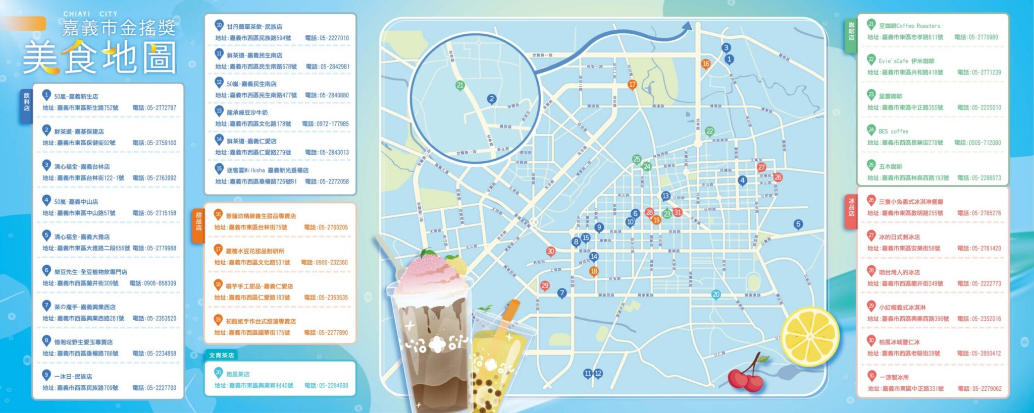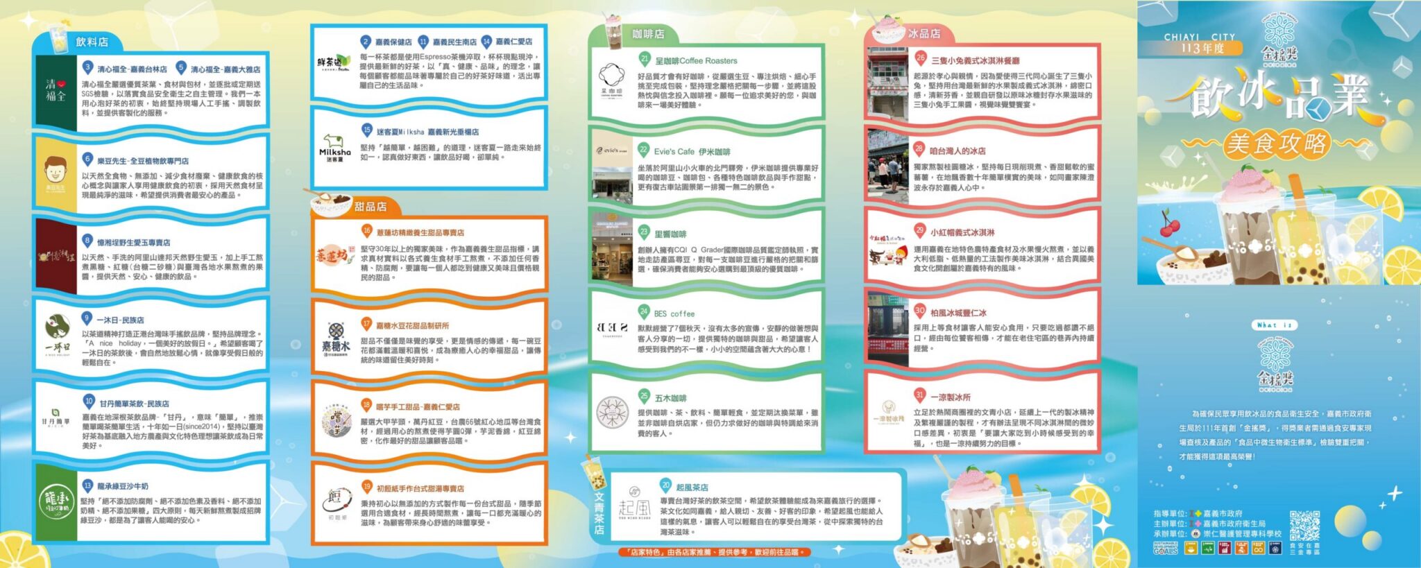 通過評核的飲冰品店家,將公布於本府衛生局網站及食安在嘉網站供民眾查詢,不僅能提升優良店家之名度,也讓消費者在餐飲選擇上可更加安心,消費者亦可以挑選有懸掛「金搖獎」布條或擺放獎座的優良店家,期許未來有更多業者主動響應,一起發揚嘉義市的飲冰品文化!