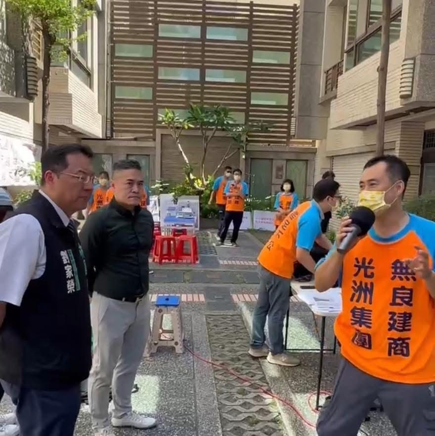 據居民陳情指出,光州建案施工以來,造成周邊三個社區接連出現牆裂、地陷、屋斜、淹水等災情,懷疑與地基擾動與土壤不當處理有關。目前正透過自救會進行法律途徑與社會陳情。