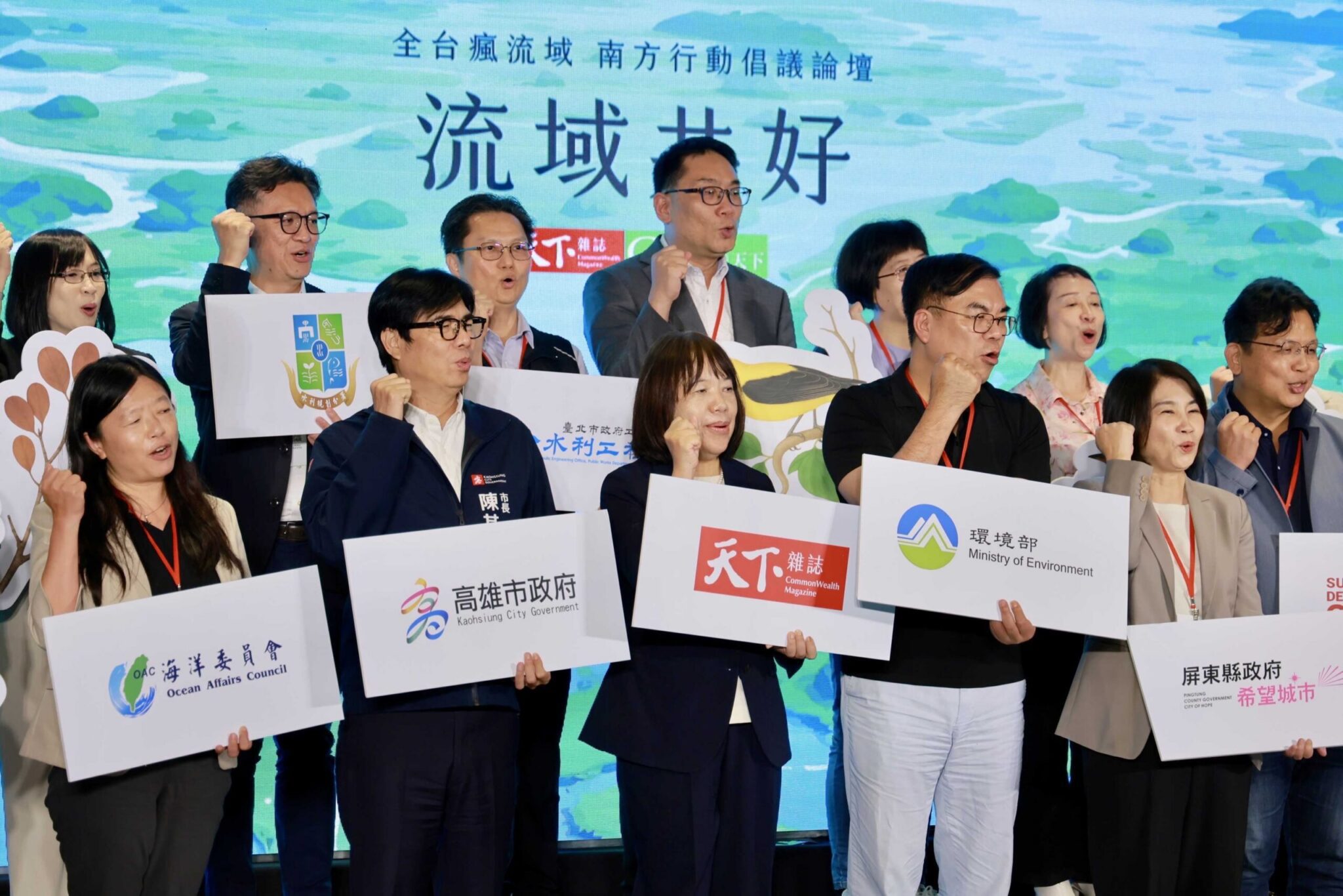 高雄市持續推動環境永續,高雄市長陳其邁今(10)日出席天下雜誌《流域共好・南方行動倡議論壇》,與環境部彭啓明部長、屏東縣周春米縣長等貴賓進行流域公約宣示,並分享高雄環境治理經驗。 本次論壇首度移師高雄,以「讓環境成為你的利害關係人」為主題,聚焦南臺灣河川永續治理,展現公私協力守護流域的堅定決心,攜手打造南臺灣永續流域環境。