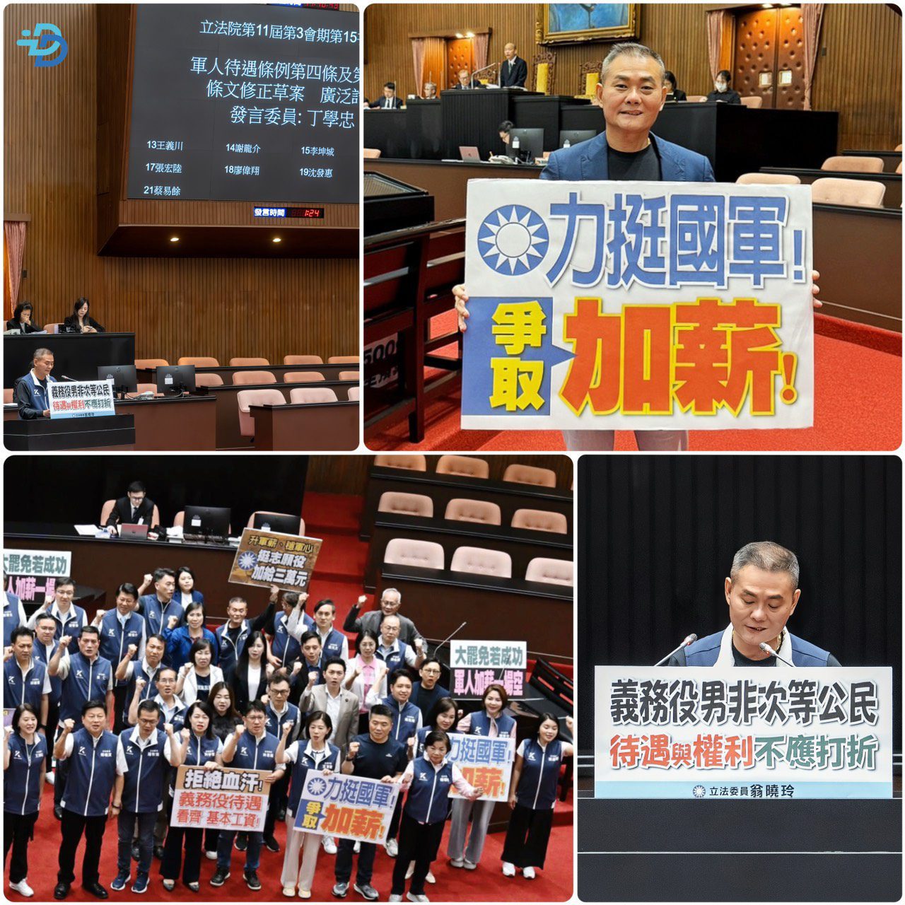立法院今天三讀通過國民黨團提出的《軍人待遇條例》與《國軍退除役官兵輔導條例》修正案,對志願投入軍旅者,每月加給3萬元,明年1月1日開始施行,雲林縣立委丁學忠表示,為了照顧軍人弟兄,修法通過全面提升國軍待遇,「挺國軍不是口號,是實際行動」。