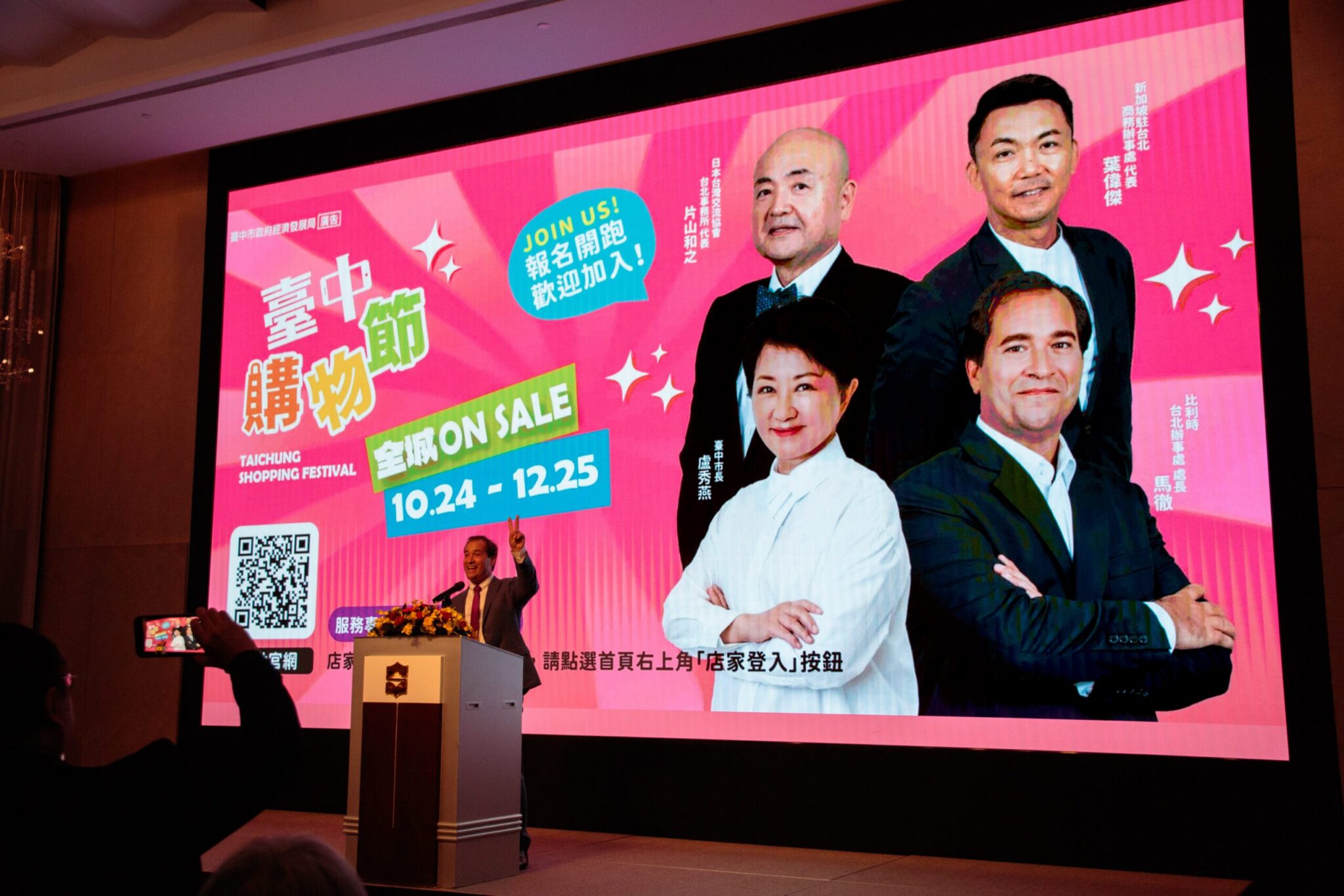 張局長也談到,值得一提的是,馬徹處長上週更於比利時國王節活動上大力推廣台中購物節,最後更大喊「台中購物節No.1!」此外,今年活動行銷更穿梭台中市街道、外縣市及國際舞台,如雙層觀光巴士結合大使推廣,預計年底上路後,帶領民眾、遊客巡遊城區的知名觀光景點;正值世界12強棒球錦標賽,除了於暖身賽在台中市洲際棒球場上露出使節的國際行銷片,購物節也與北市攜手前進台北大巨蛋向世界行銷,慶典經濟再次跨越國界。