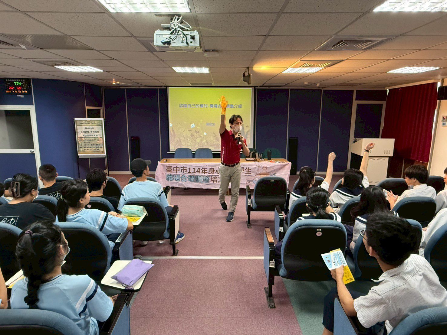 隨著畢業季即將來臨,許多高中職及大專校院學生正邁向人生新階段。為協助身心障礙學生在進入職場前提升就業權利意識,台中市府勞工局特別於畢業前夕走入校園,舉辦「職場合理調整培力講座」,至今已辦理9場,累計290位身心障礙學生、老師及家長參加。