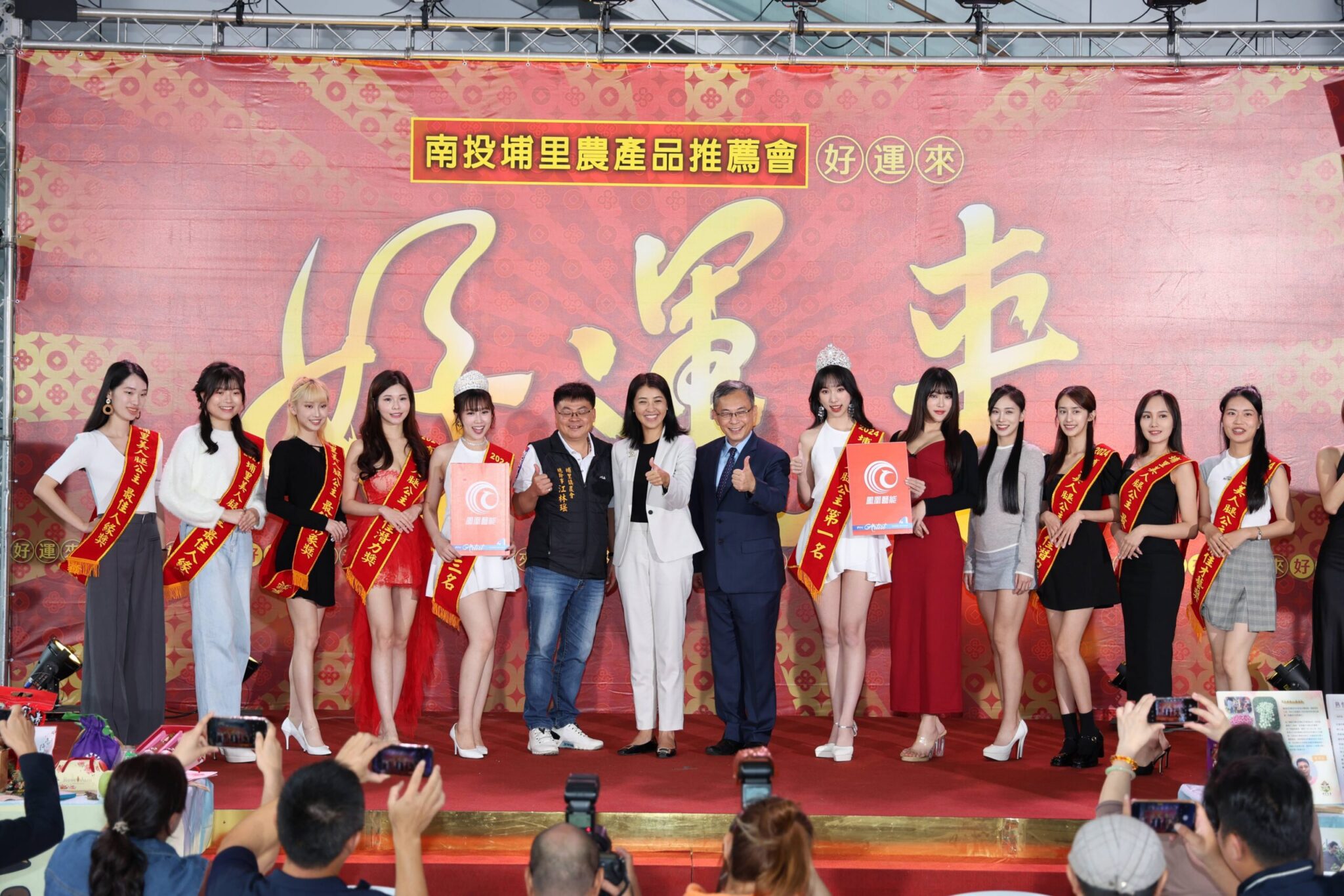 「埔里茭點農產及青農快閃市集暨茭點女神簽約活動」19日下午喜氣登場,許縣長率縣府農業處團隊出席,埔里鎮農會總幹事江林瑤、埔里青農聯誼會長蔡永鴻都到場,兩位茭點女神閃亮登場後,由民視鳳凰藝能公司總經理趙善意遞交簽約書給吳若湄與林靖軒,許淑華也與趙善意「交換禮物」並為這項簽約見證。