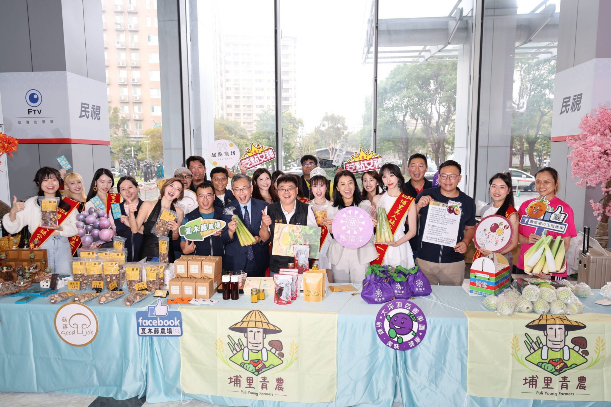 埔里鎮農會茭點女神選拔冠軍吳若湄、季軍林靖軒,19日與民間全民電視公司(民視)旗下的經紀公司鳳凰藝能簽約,擴大在民視公司總部大廳以南投埔里茭點女神農產推薦會方式舉辦,同時登場的「埔里茭點農產及青農快閃市集」大受民視員工及附近遊客歡迎,買氣強強滾。