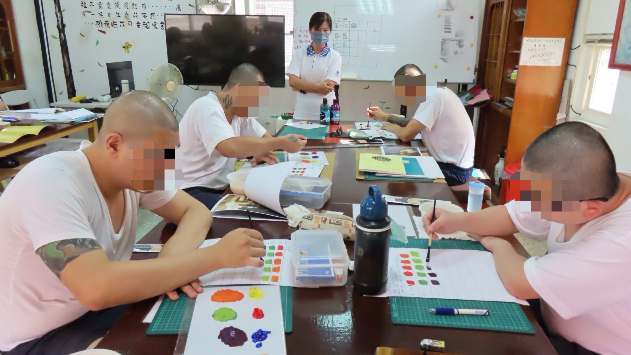 零基礎的學員們自色彩學入門;為人生打開另一領域,學習藝術創作/圖,監所提供