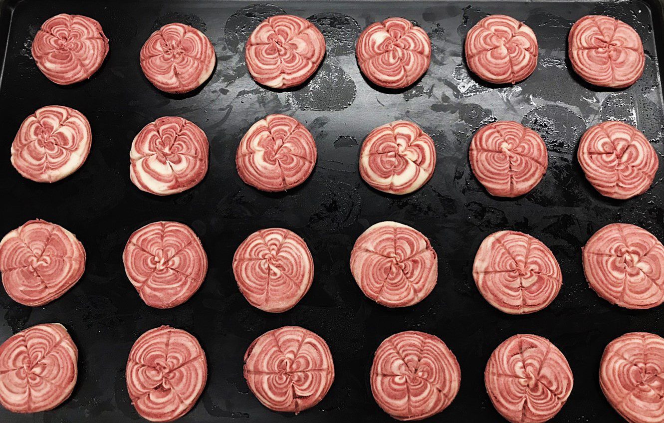 負責此次開發的糕點師傅陳文濱表示,這款餅的餡料精心挑選,製作過程中的前置準備長達一個月,絲毫不馬虎,特別是作為其中重要原料的食用玫瑰花,經歷了多次颱風的影響,讓量產成本與可供應的數量面臨巨大的挑戰。在研發過程中,師傅們多次調整餅皮與內餡的比例,並選用新鮮的花瓣,每一片花瓣的大小都經過精心計算,力求讓每一口都能帶給品嚐者如同置身玫瑰花園的細膩感受。
