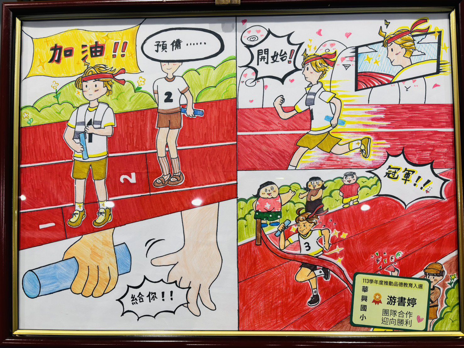 本次活動徵選成果豐碩,展現學生與教師豐沛的創意與品德實踐力。例如「教品德」,港西國小教師設計《用EYE看見愛——與視障人士同行的品德之旅》,引導學生認識弱勢族群需求,反思不同生命處境中的挑戰與同理;「說品德」,東信國小學生創作《誠實信用兩兄弟》,展現誠實信用與自律守法的價值觀;「畫品德」,南榮國中學生創作《一加一大於二》,以「團隊合作、愛護環境」為核心價值,透過漫畫呈現協力互助精神,並呼籲學生一同行動,營造整潔、友善的校園環境;「秀品德」,堵南國小學生創作的作品《夢》,透過夢境中與蝸牛的連結,引導學生理解生命的價值,並導入野外觀察三原則:「不接觸、不干擾、不餵食」,呼應對自然的尊重。