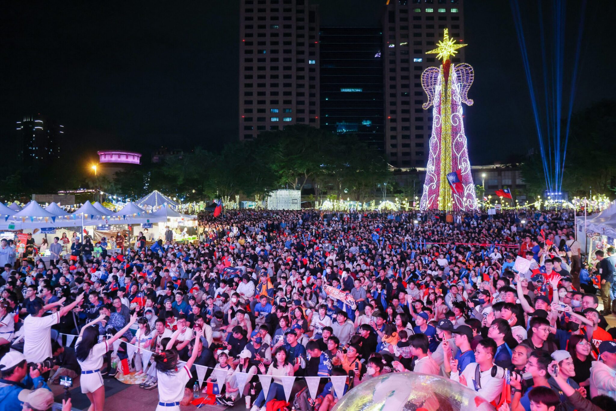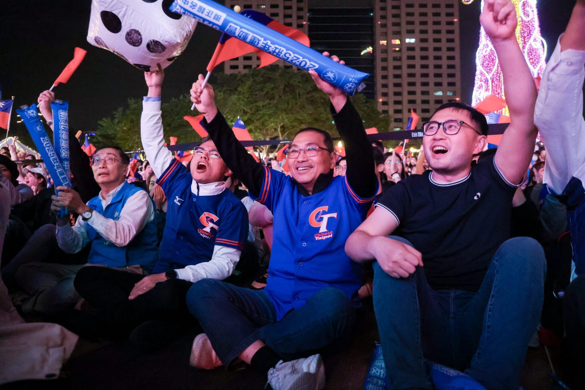 侯友宜與球迷一同於市民廣場觀看世界12強冠軍戰直播派對,為中華隊加油。