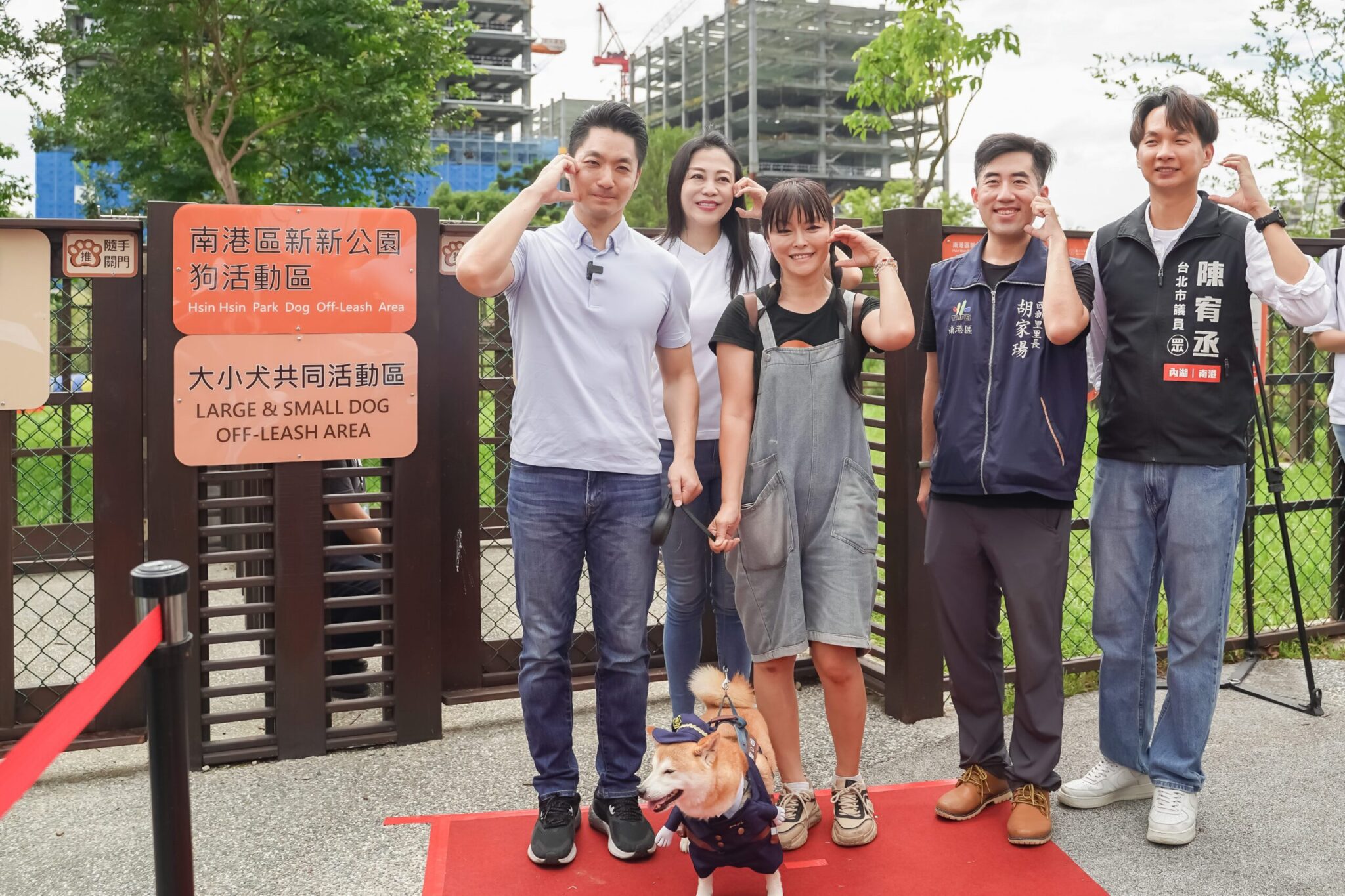 臺北市長蔣萬安今(14)日出席南港區「新新公園狗活動區」啟用記者會。「新新公園狗活動區」佔地約300平方公尺,屬小而美、交通便利的社區型設施,也是臺北市第21處狗狗專屬活動區。蔣萬安致詞表示,週末的南港特別熱鬧,不僅有LaLaport吸引大批人潮,今天啟用的「新新公園狗活動區」,也是在各界攜手努力下,完成南港第二處狗狗活動空間。