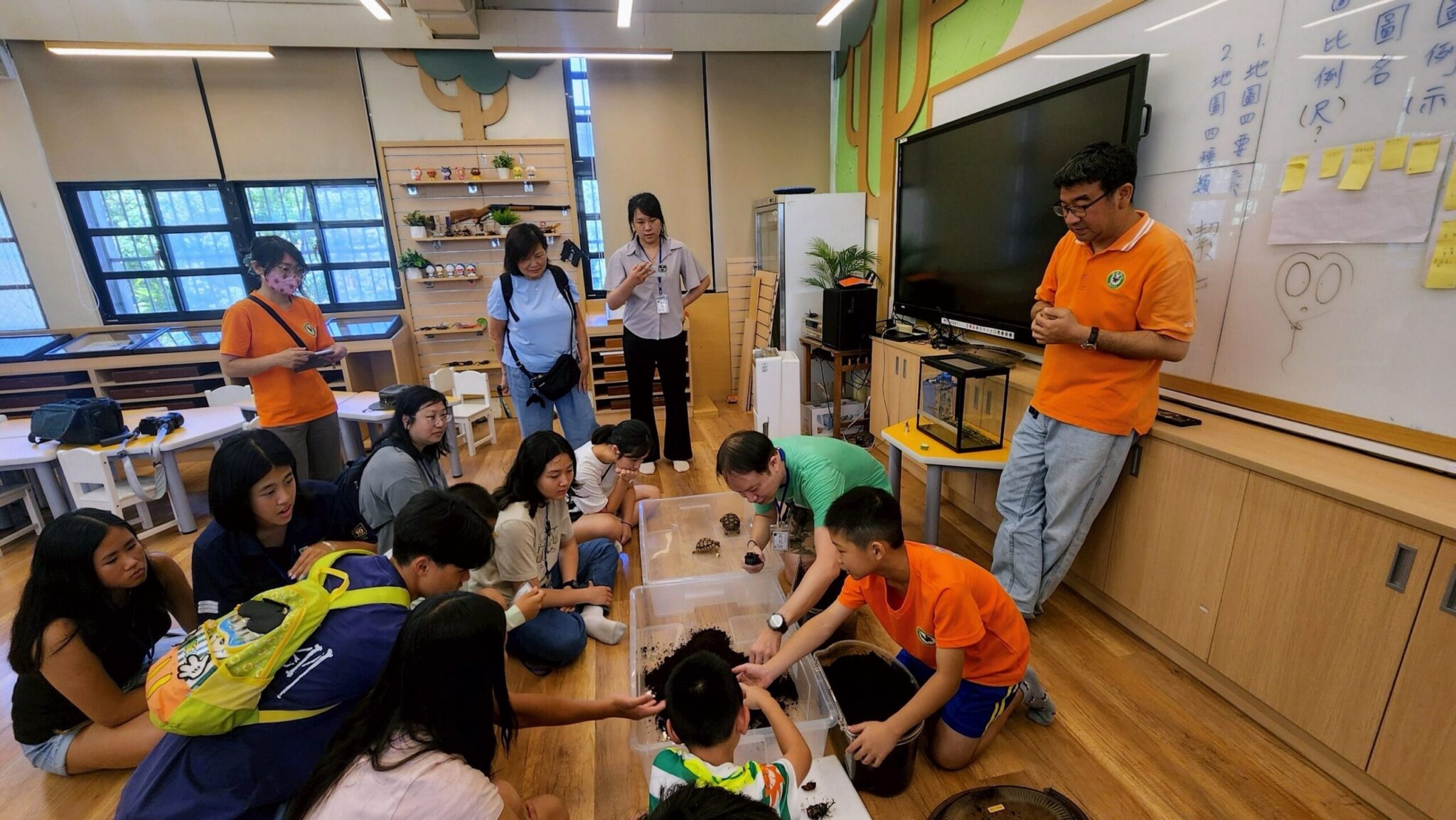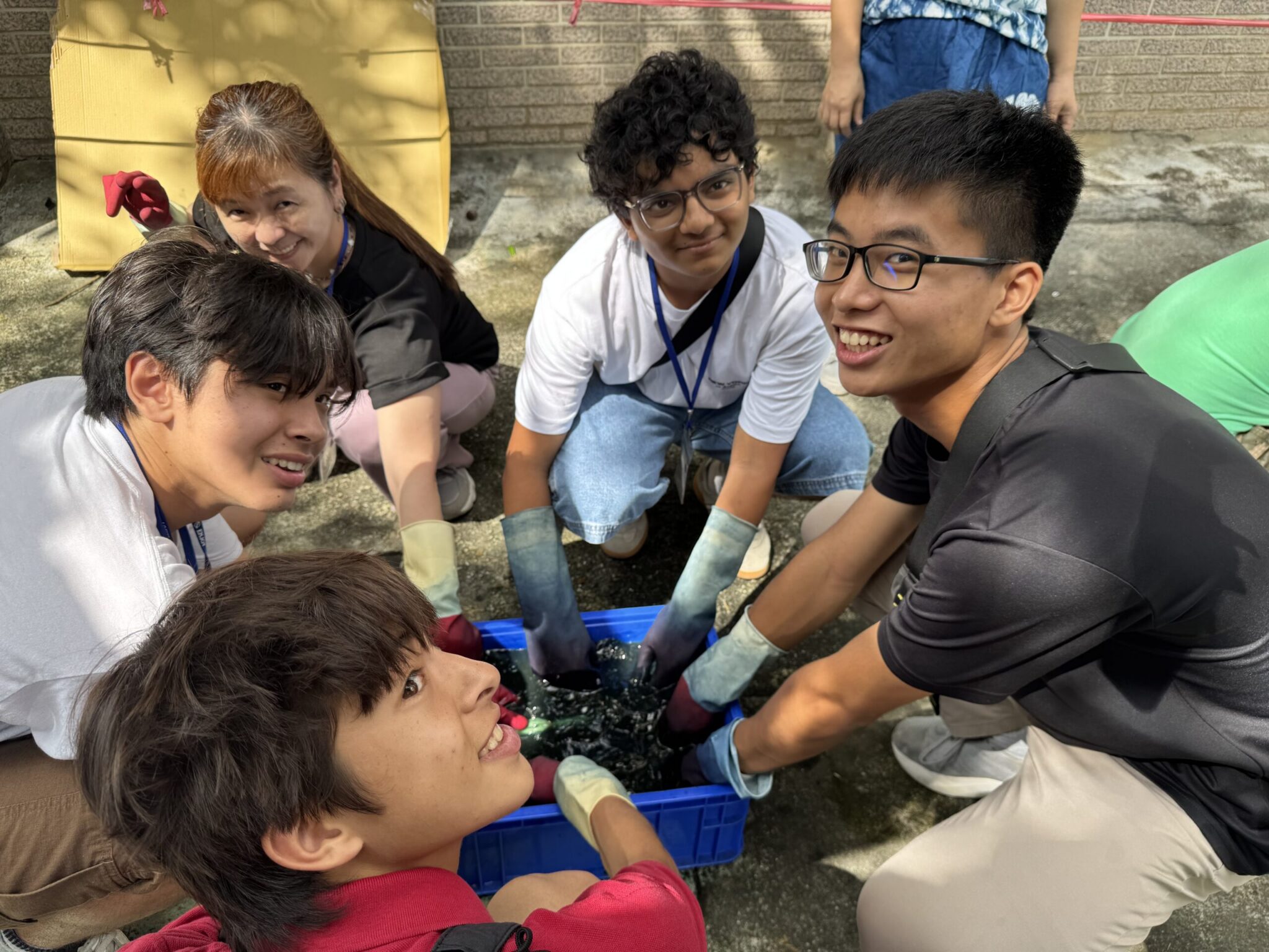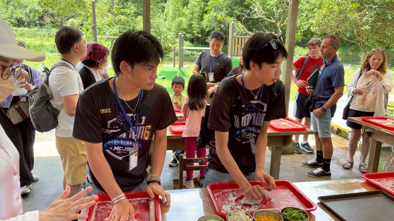 上午由瑪陵國小依據校園與社區特色設計六個體驗關卡,包括生態探索站、文物體驗站、植物觀察站、披薩製作站、童玩互動站及翠谷橋導覽站,透過觀察甲蟲、趣味解謎、嗅覺體驗、自製窯烤、體驗傳統童玩與導覽自然景觀,孩子們彎下腰近距離觀察甲蟲與陸龜,台灣學生則用英文介紹這些生物的習性,即使語言不同,笑聲卻頻頻傳出,於此展開一場充滿驚喜的探索之旅。下午由暖江國小安排藍染課程,介紹在地大菁植物染工藝。學生們透過綁紮、染色、漂洗等步驟,親手製作專屬藍染作品。不僅讓美國學生體驗台灣原生植物的染色魅力,也讓本地學生更加理解傳統工藝的文化底蘊。