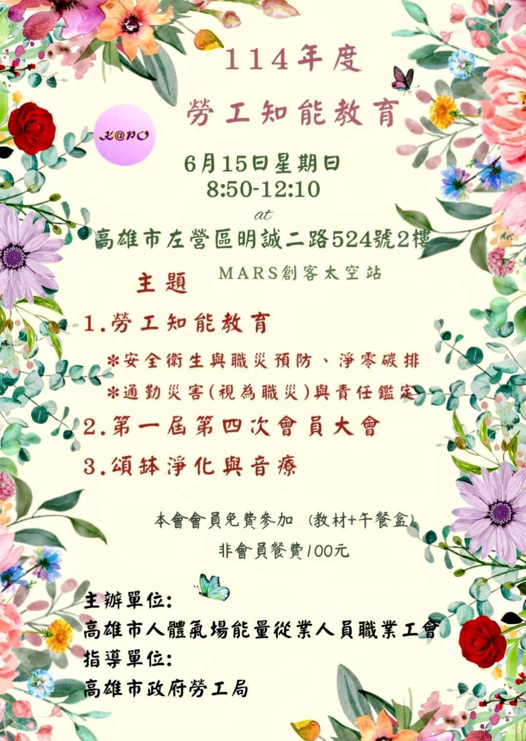 全球「療癒經濟」持續升溫,在歐美及亞洲已逐漸成為結合健康、文化與觀光的潛力產業,但台灣的身心靈市場卻仍處於規範模糊、經營零散的早期階段。今(15)日上午,高雄市人體氣場能量從業人員職業工會於左營MARS創客太空站舉辦「114年度勞工知能教育」活動,結合職業安全衛生教育與音療分享,並召開第一屆第四次會員大會,特別安排頌缽淨化體驗課程,邀請療癒教師王美嬅進行引導與實作,為與會者帶來一場身心放鬆的探索旅程。