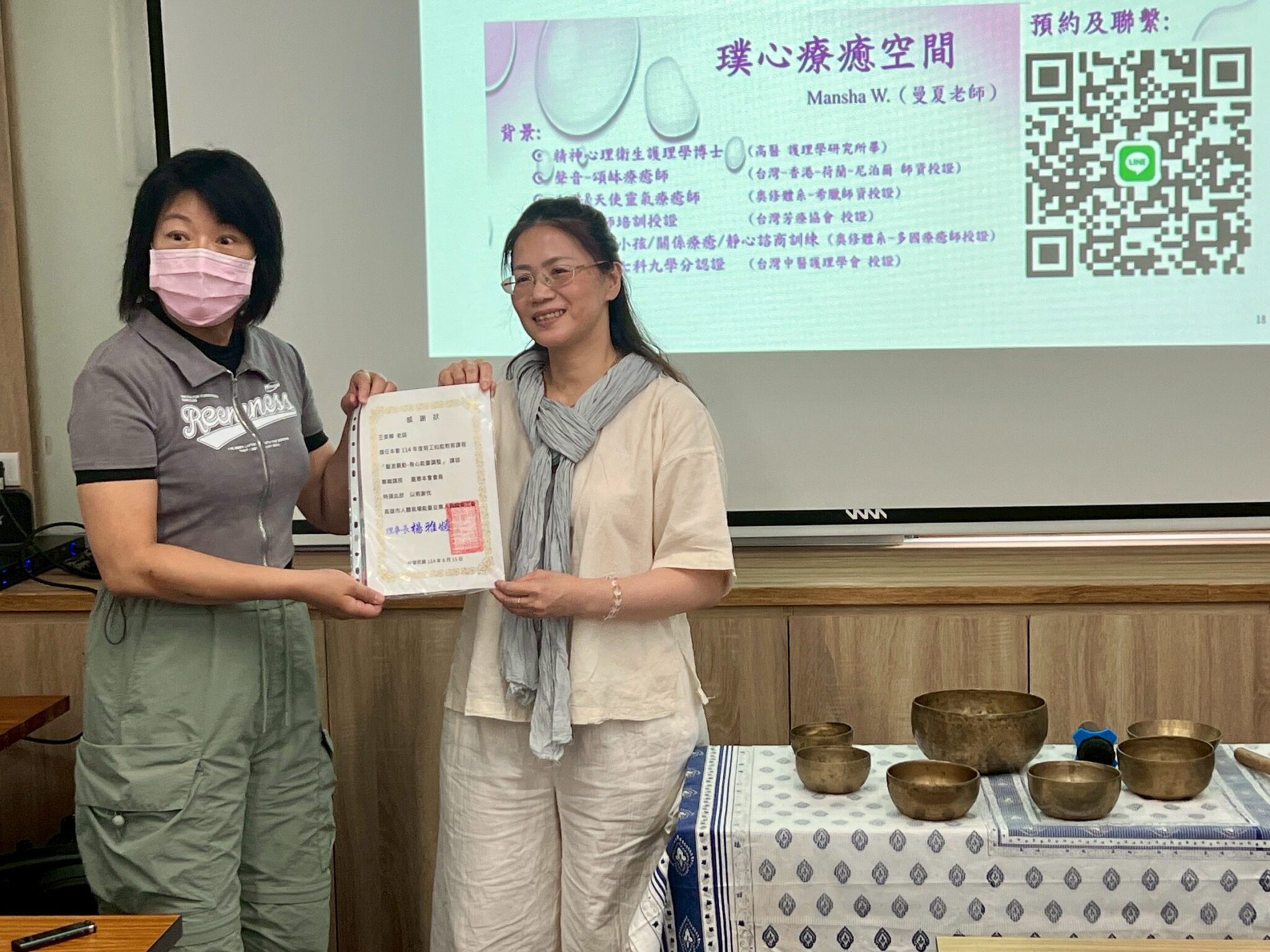 勞動教育結合音療分享 王美嬅老師引導頌缽淨化體驗