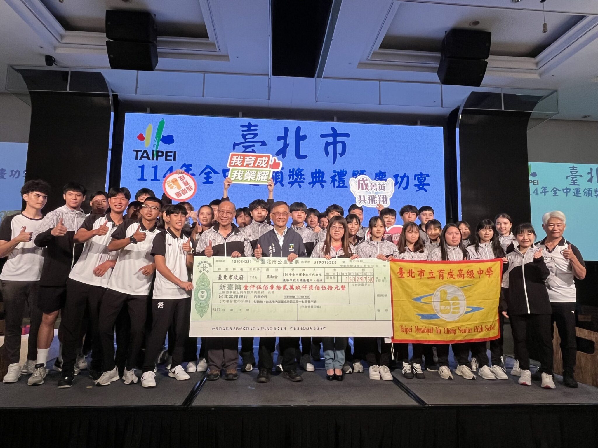 臺北市長蔣萬安為了感謝在北市為運動努力奉獻的各校校長、教練、訓練人員,特別是辛勤訓練的選手們,特別出席與北市府教育局親自頒發獎勵金及舉辦餐敘來勉勵選手們的傑出表現。蔣萬安在出席致詞時表示,很開心看到許多選手在賽場上展現自我的競技力、信心、毅力與決心,這次代表隊成績卓越,獎牌數較去年增加5面,且金牌數、獎牌數及總錦標皆居全國之冠,不僅總獎牌數刷新歷史紀錄,也讓臺北市睽違11年再次締造三連霸的紀錄,非常不容易。