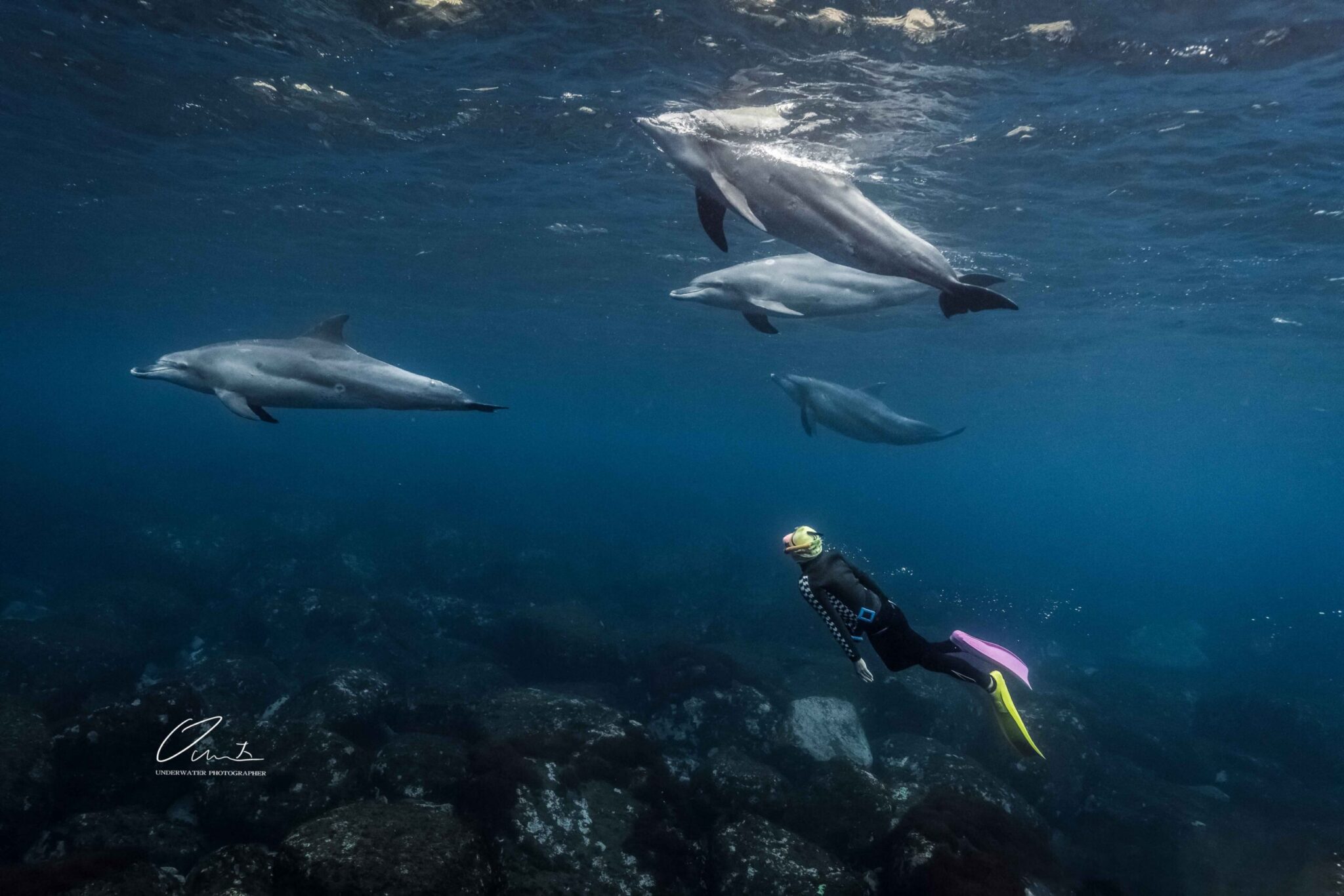 彈頭(宋健彰)私下是潛水狂熱份子,近期赴日本御藏島不僅親眼目睹多隻野生海豚在身邊穿梭嬉戲。(攝影:歐大)照片提供:美秀創意