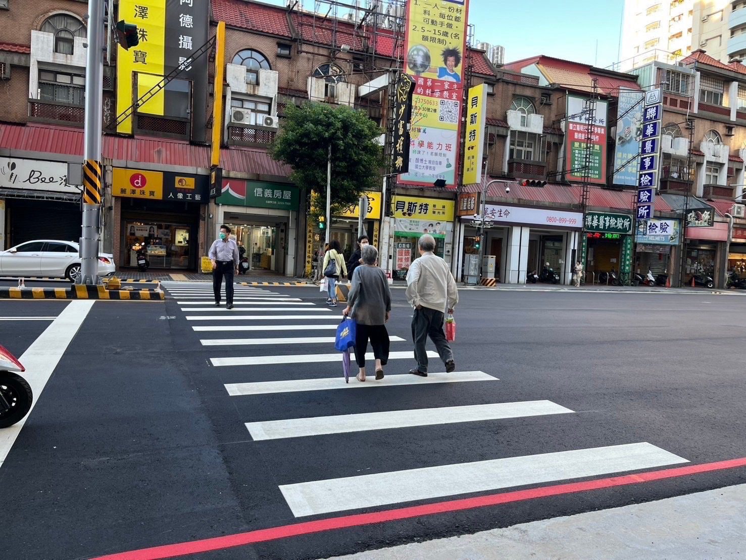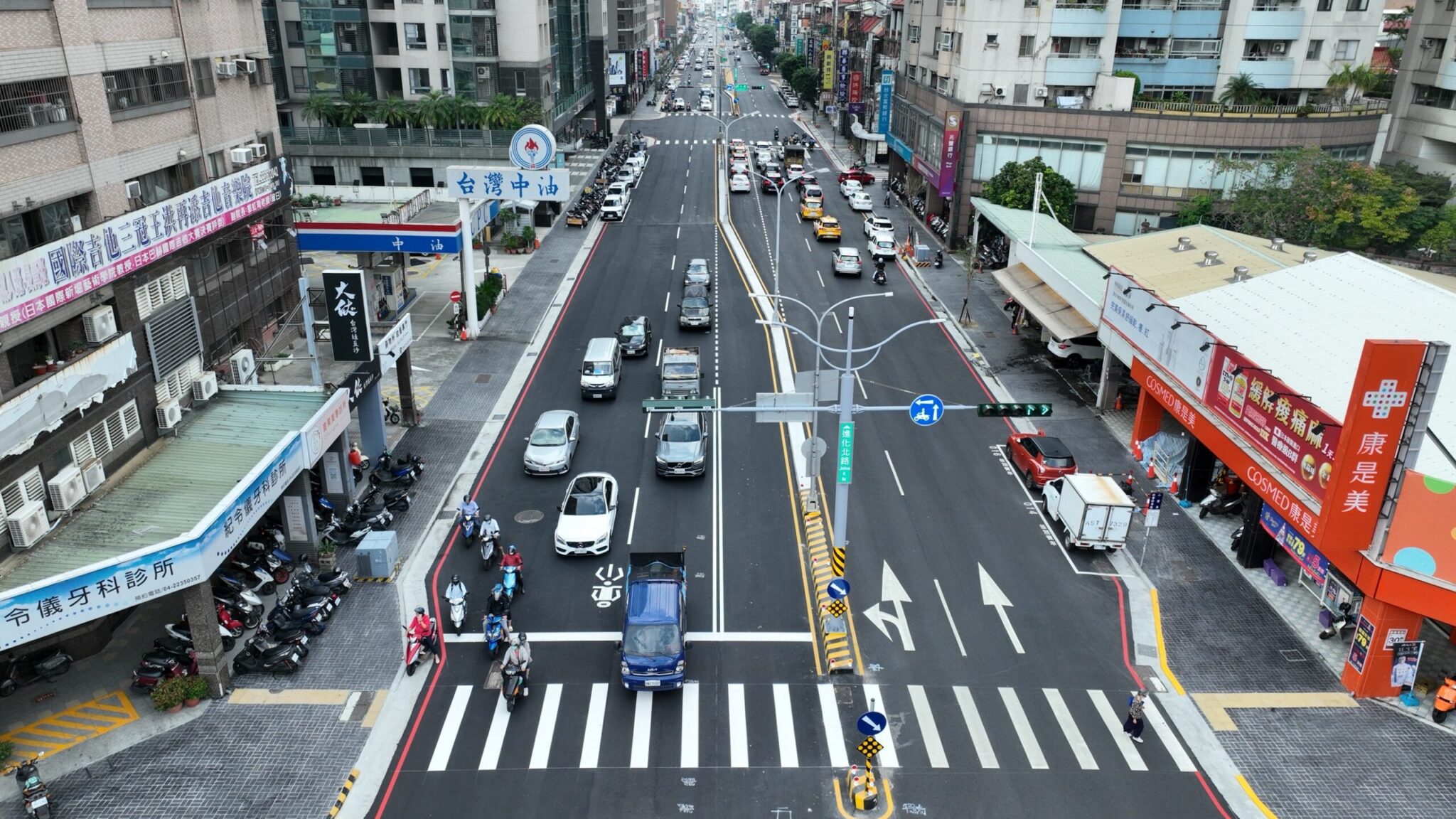 建設局表示,市府建設團隊在提升行人安全的同時,也積極改善行車環境。此次工程於重要路口新增偏心左轉車道,有效解決車輛左轉時需切換至內線車道,影響後方直行車輛的情況,進一步降低交通衝突與路口延滯。此外,道路燙平工程完工後,路面平整度顯著提升,提供市民更順暢且安全的行車體驗。