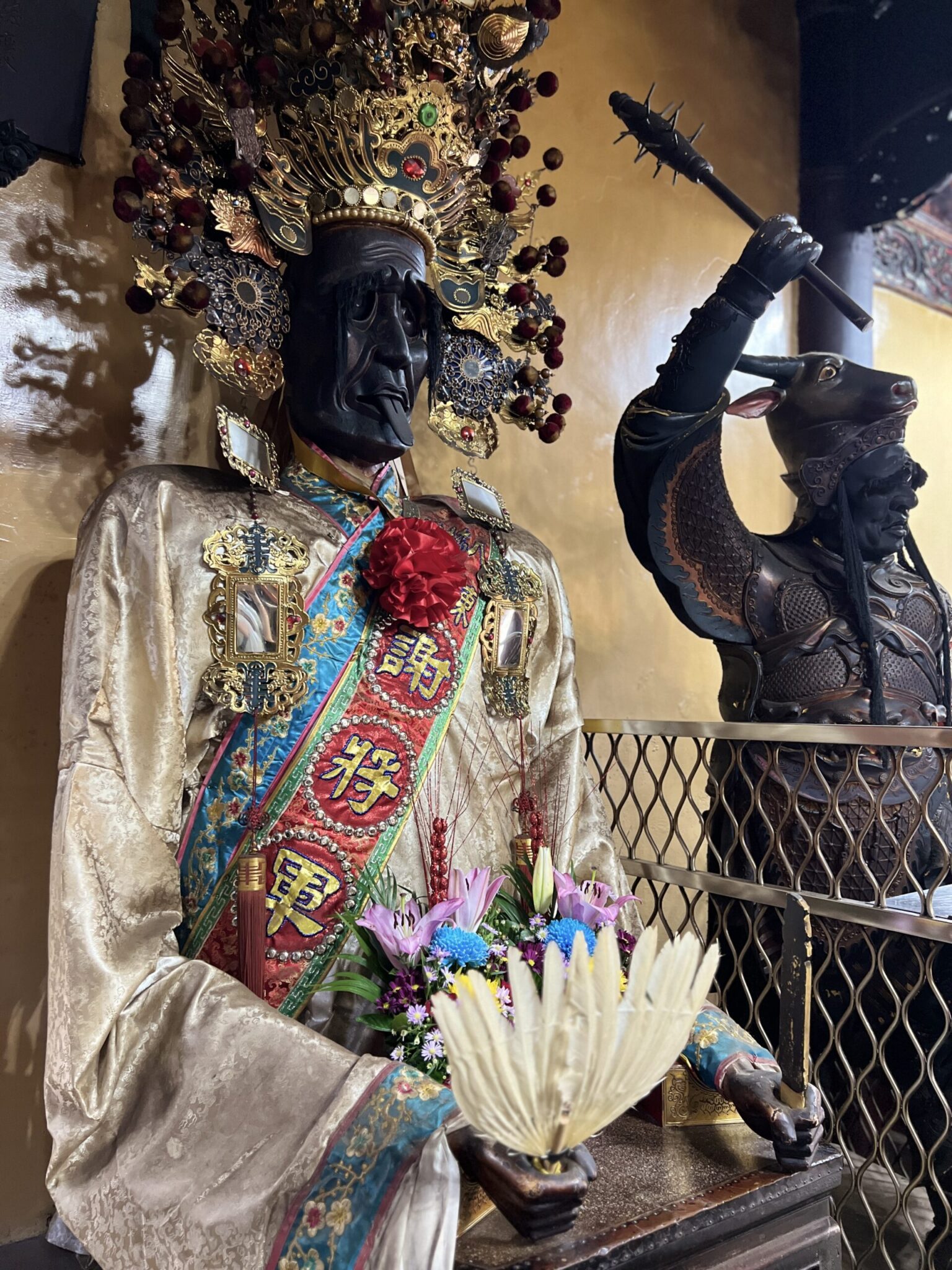 • 正殿前方中央:主祀東嶽大帝,為地府之尊、泰山之神,統御生死簿、賞善罰惡,掌管幽冥審判與人間福禍。
