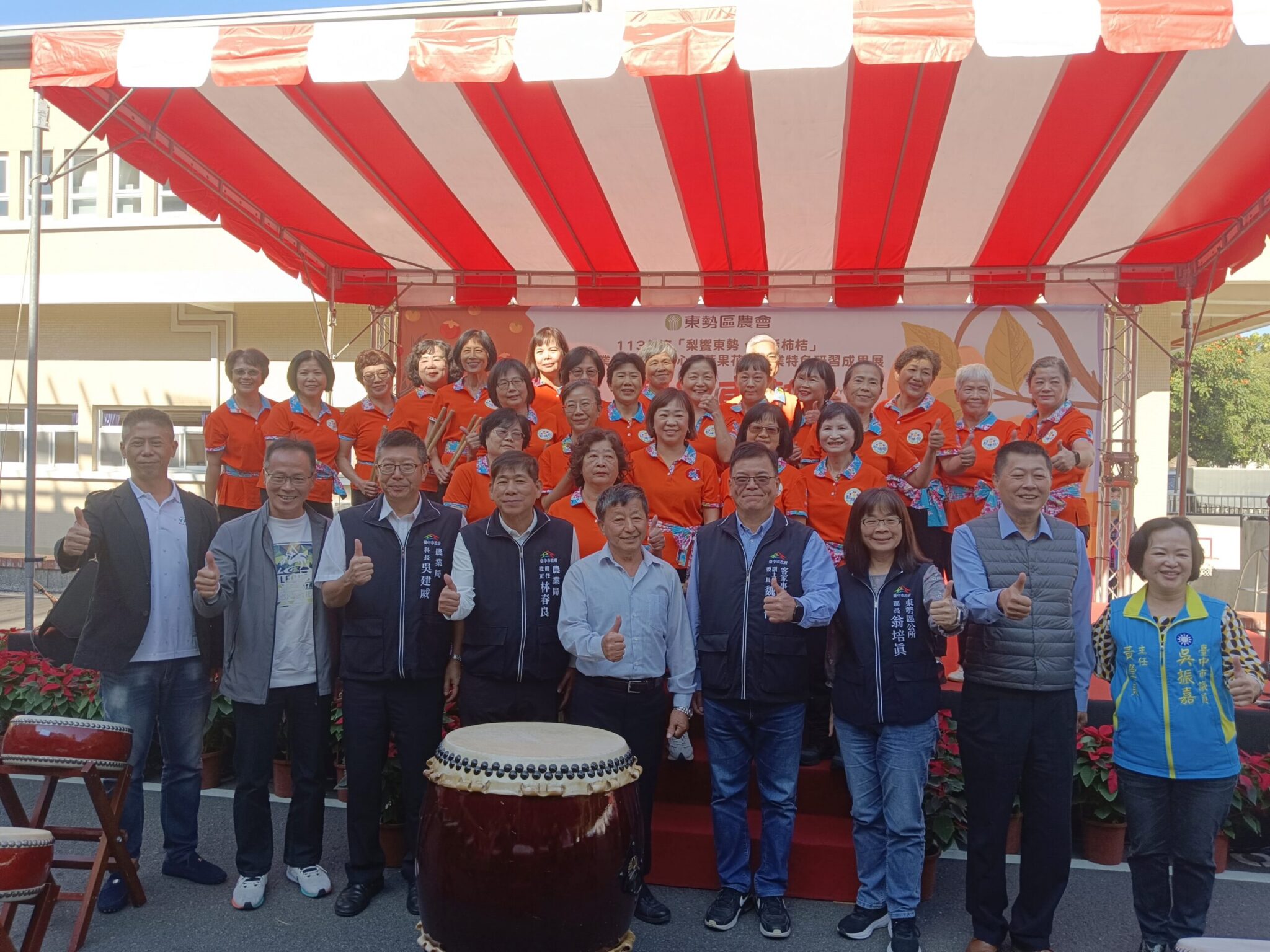 今日活動,農業部農田水利署台中管理處處長王曼菁、台中市政府客家事務委員會副主任委員魏瑞伸、農業局技正林春良、科長吳建威、東勢區長翁培真、台中地區農會總幹事廖述宗、石岡區農會總幹事張東海,東勢區農會理事長劉進業、常務監事賴裕銘、總幹事田士欣、東勢區軟埤坑休閒產業發展協會理事長林美英等均到場,立法院副院長江啟臣、市議員吳振嘉、蔡成圭、台中市農會、豐原區農會、和平區農會均派員共襄盛舉。