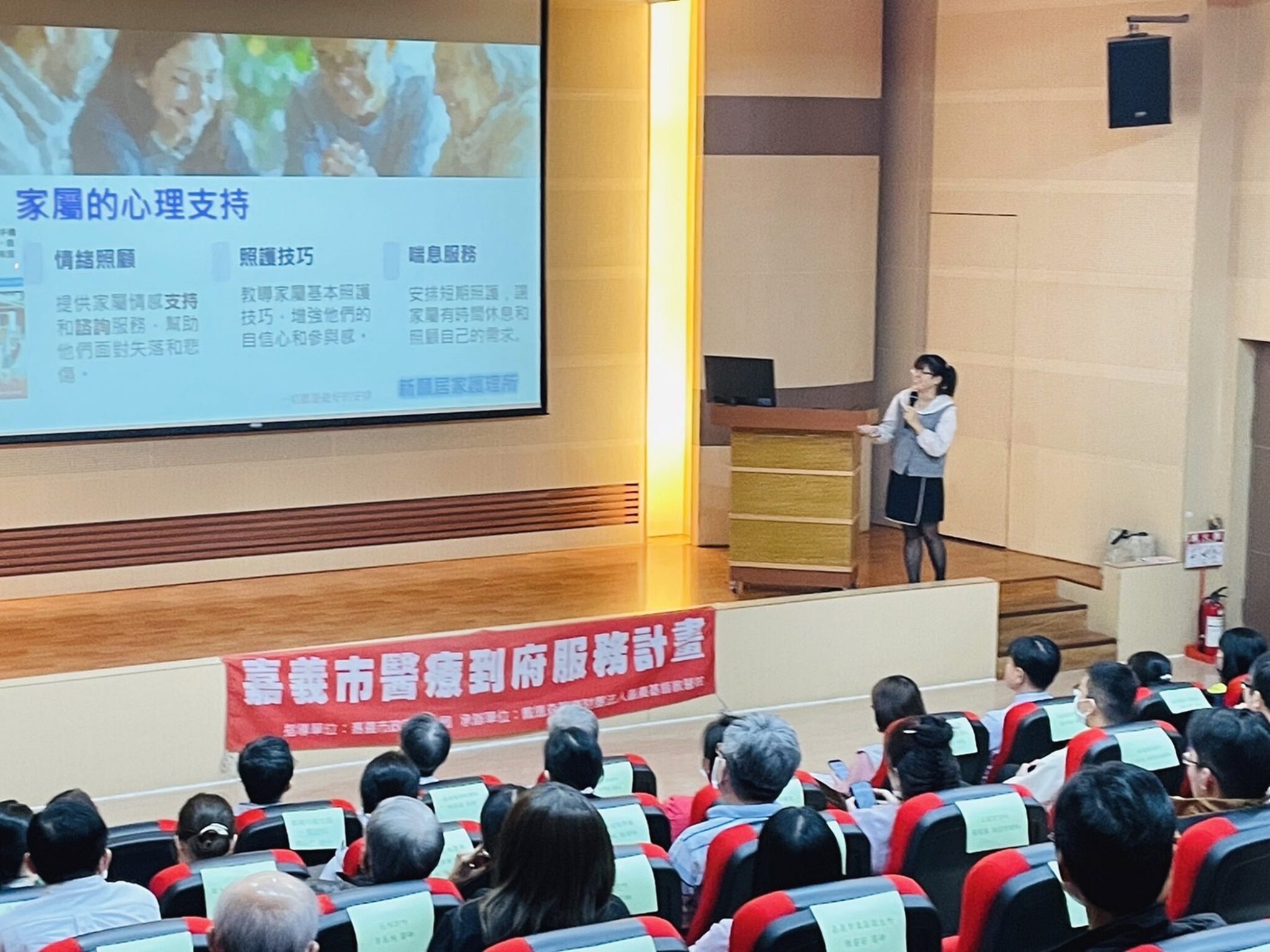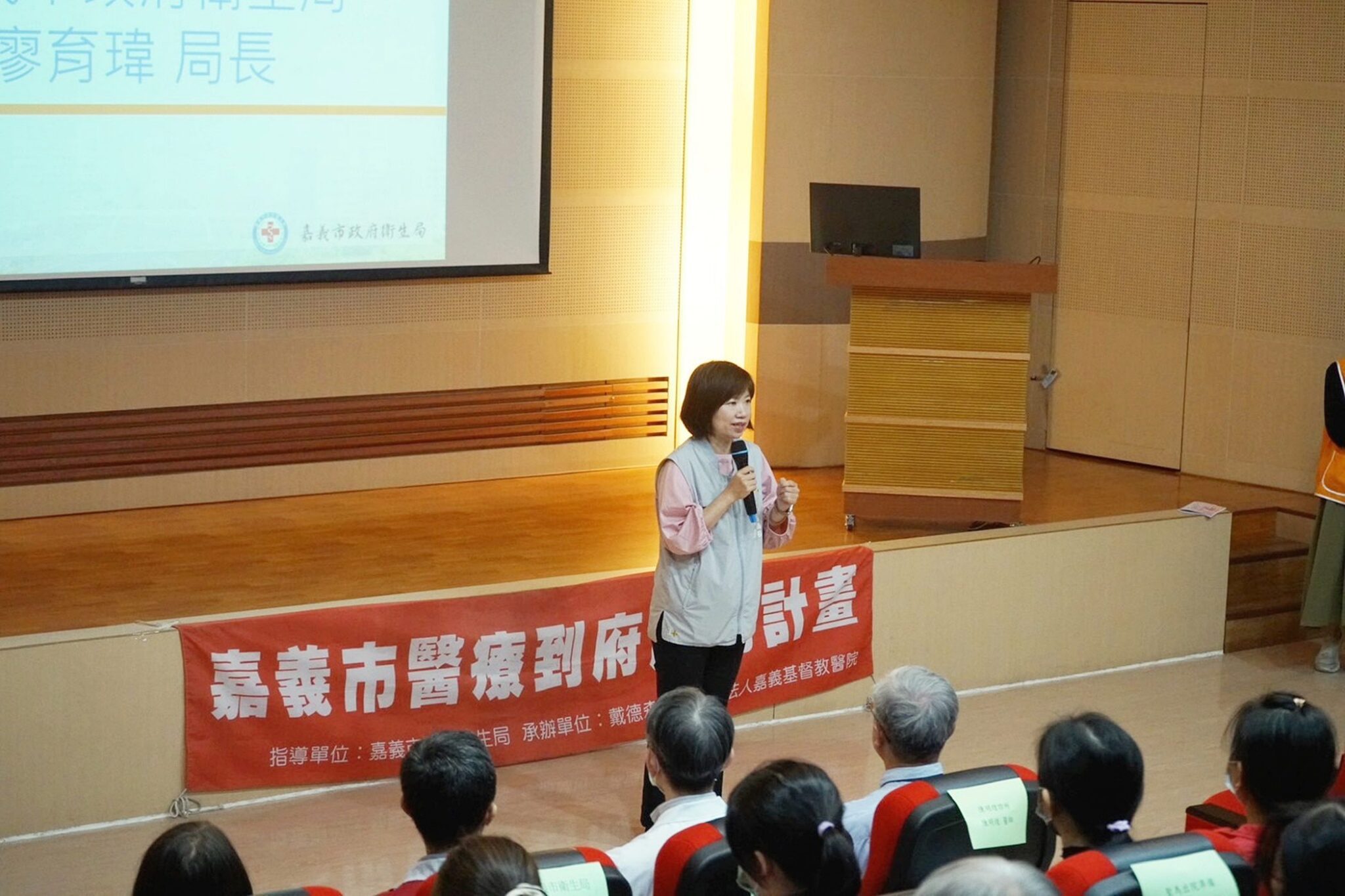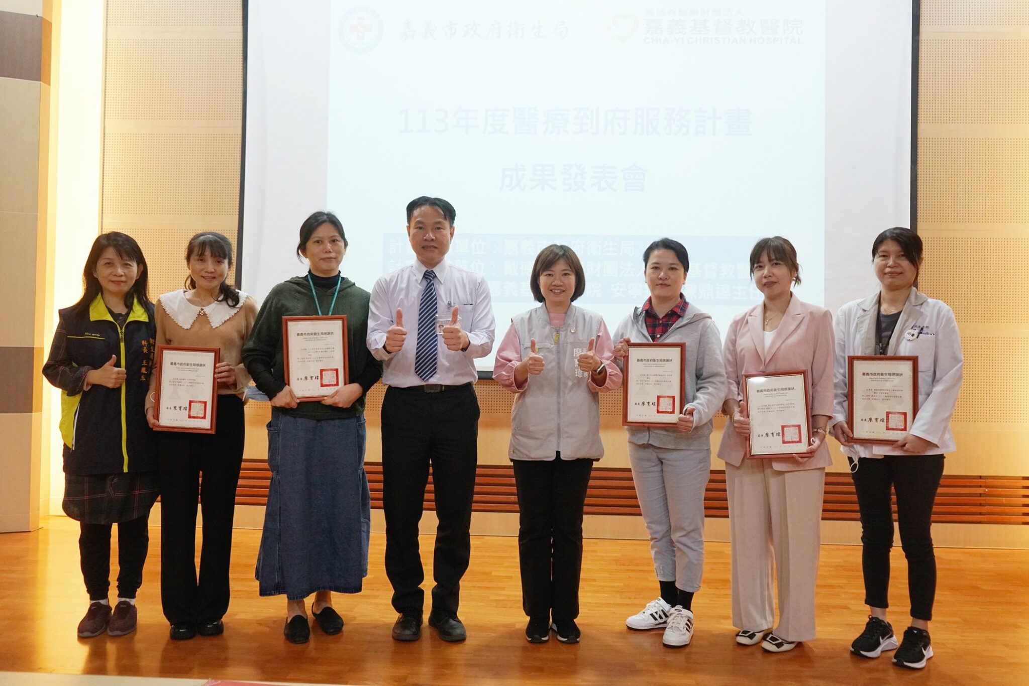 嘉義市政府衛生局昨(5)日於嘉義基督教醫院路加堂辦理「嘉義市113年醫療到府服務計畫成果發表會」, 嘉義市政府衛生局局長廖育瑋、嘉基醫院副院長劉中賢及57家醫事機構出席與會,活動現場播放一幕幕醫療人員陪伴鄉親面對溫馨的畫面,令現場與會者熱淚盈眶。