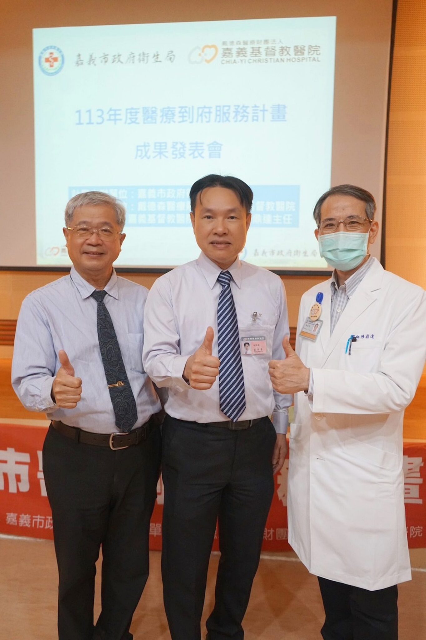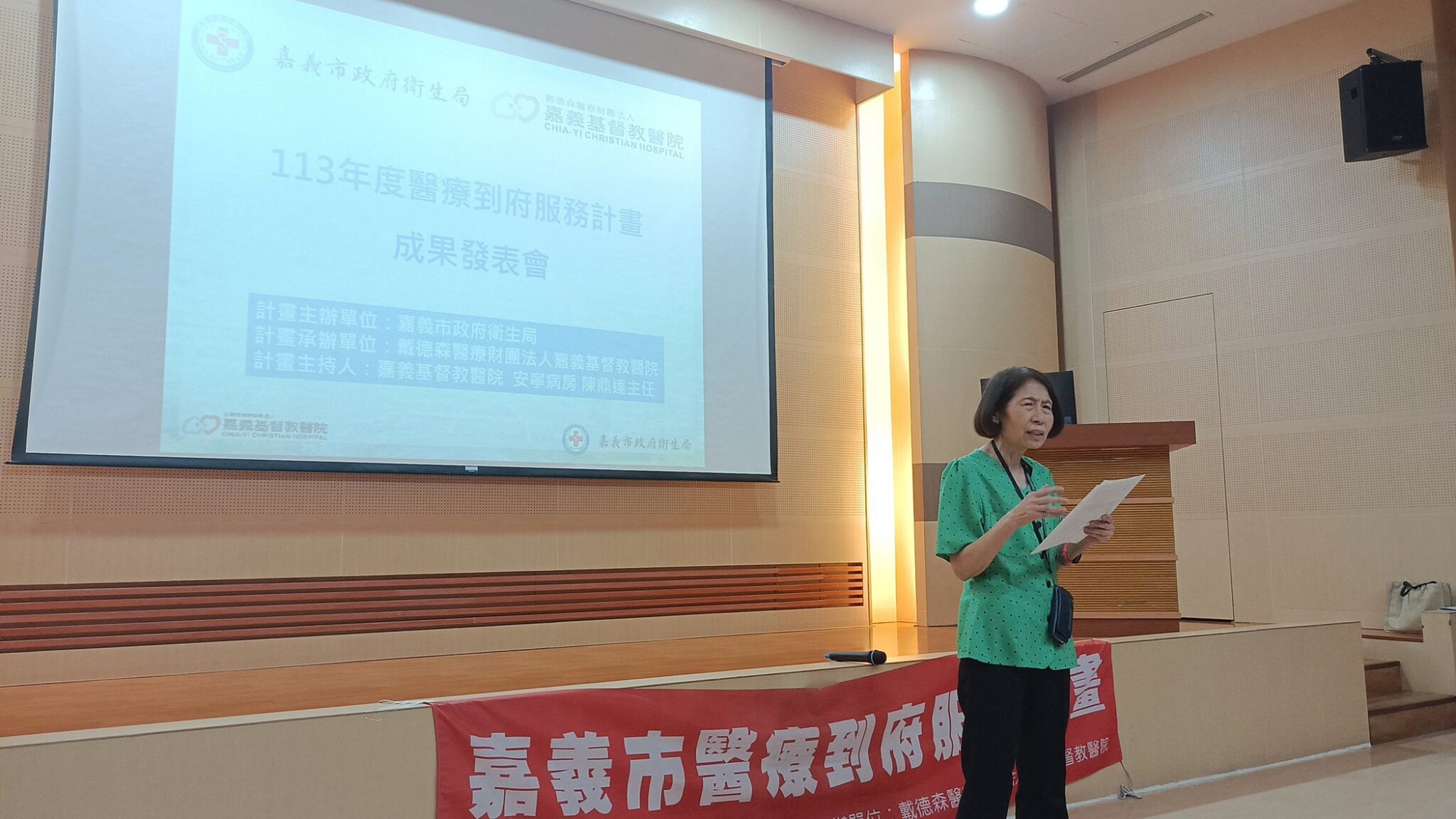 嘉義市政府衛生局昨(5)日於嘉義基督教醫院路加堂辦理「嘉義市113年醫療到府服務計畫成果發表會」, 嘉義市政府衛生局局長廖育瑋、嘉基醫院副院長劉中賢及57家醫事機構出席與會,活動現場播放一幕幕醫療人員陪伴鄉親面對溫馨的畫面,令現場與會者熱淚盈眶。