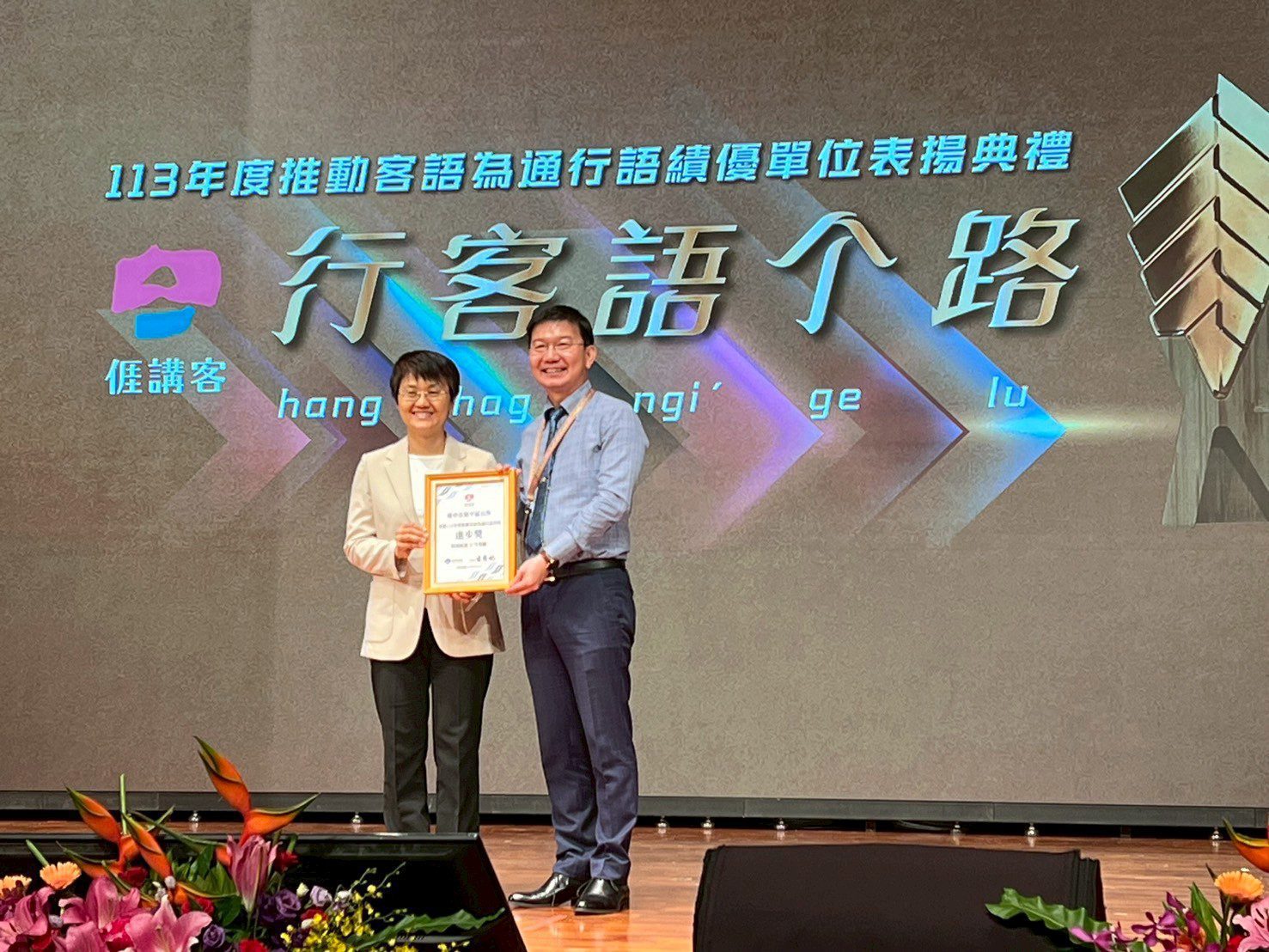 江主委表示,感謝中市府各機關公務同仁及民間團體長期合作努力,一點一滴地推動與學習客語,感謝此次各獲獎單位的傑出表現,使市府在113年度客語為通行語執行成效評核中再度蟬聯佳績。此外,台中市客家文化重點發展區內的區公所成績也十分耀眼,包含石岡區公所與東勢區公所雙雙榮獲「優等」,各獲獎勵金150萬元;新社區公所也獲「優等」獎勵金120萬元;和平區公所則首次獲「進步獎」,為市府整體推動再添亮點。