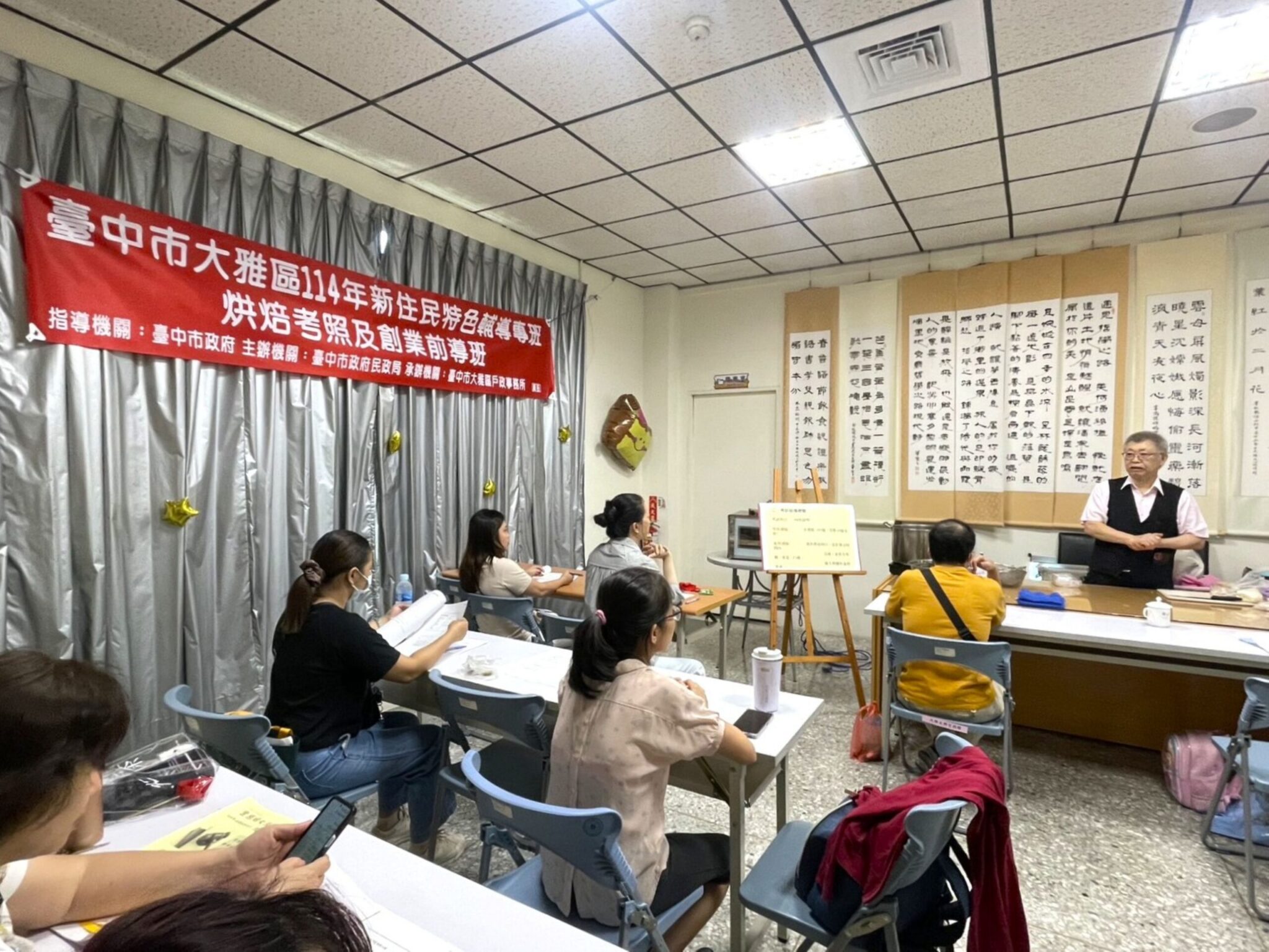 為協助新住民提升職場技能,拓展就業與創業可能,台中市大雅區戶政事務所開辦「114年新住民特色輔導專班-烘焙考照及創業前導班」,培養新住民在烘焙領域的實作與創業能力,為期3天的課程於今(21)日圓滿落幕。台中市府民政局長吳世瑋表示,此次課程主要建立新住民朋友對烘焙產業的初步認識,結業後可銜接報名勞動部或市府勞工局的相關職訓課程,為未來就業與創業奠定穩固基礎,贏在起跑點。