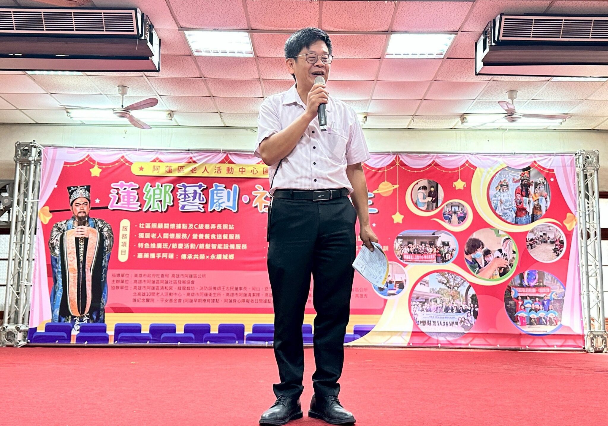 114年阿蓮區老人活動中心暨北區區域型成果展「蓮鄉藝劇,社區共生」,今(21)日上午在高雄市阿蓮區清和宮熱鬧登場。由社區長輩與在地子弟聯袂演出,展現社區參與、青銀共融的感人風景。