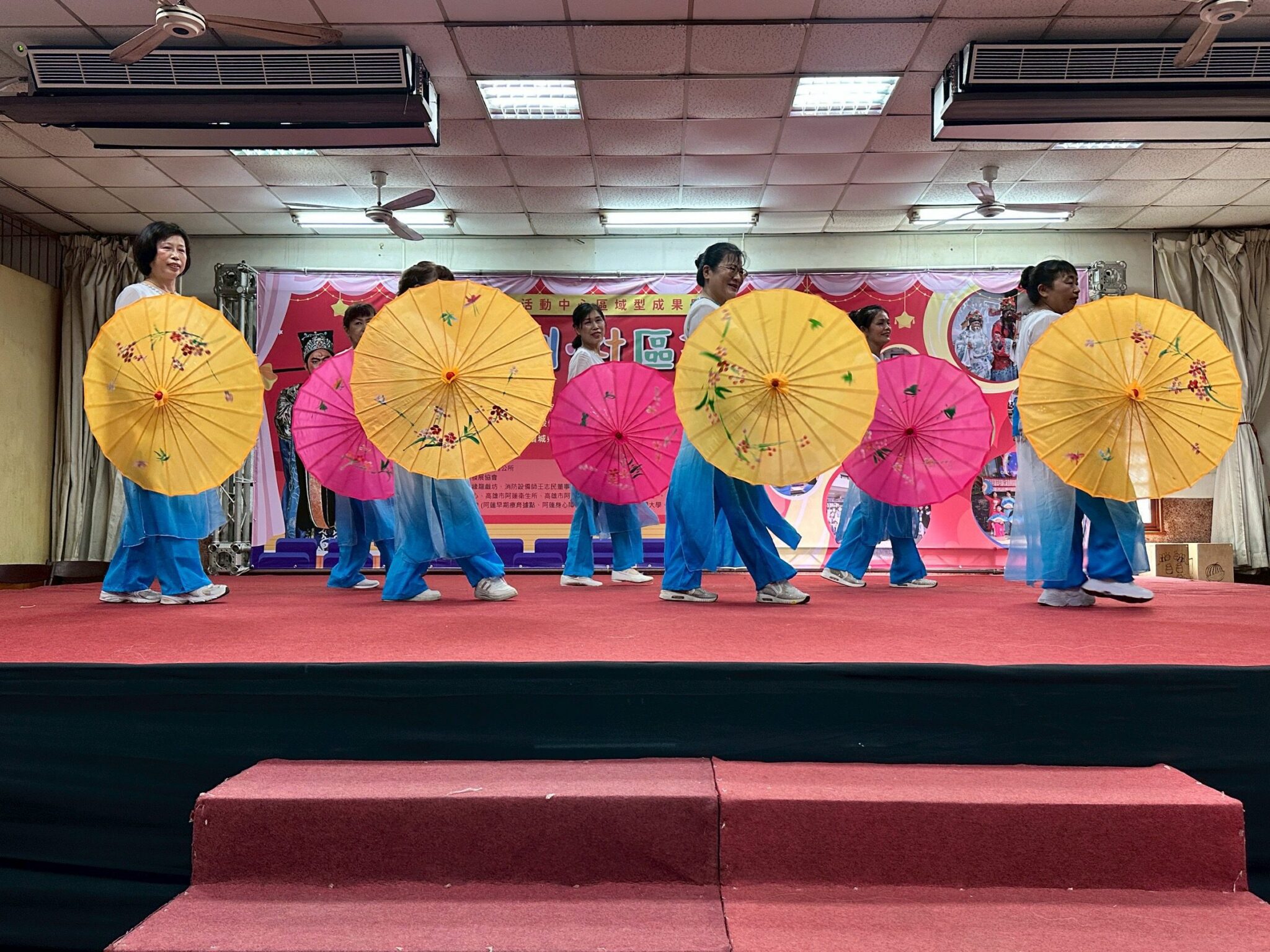 此次成果展特別邀請北高雄區的岡山與茄萣老人活動中心進行交流演出,觀眾掌聲不斷。阿蓮活動中心的二胡班與音箱鼓班也接力上台,長輩們的舞蹈與表演展現活力、自信與笑容,令人動容。