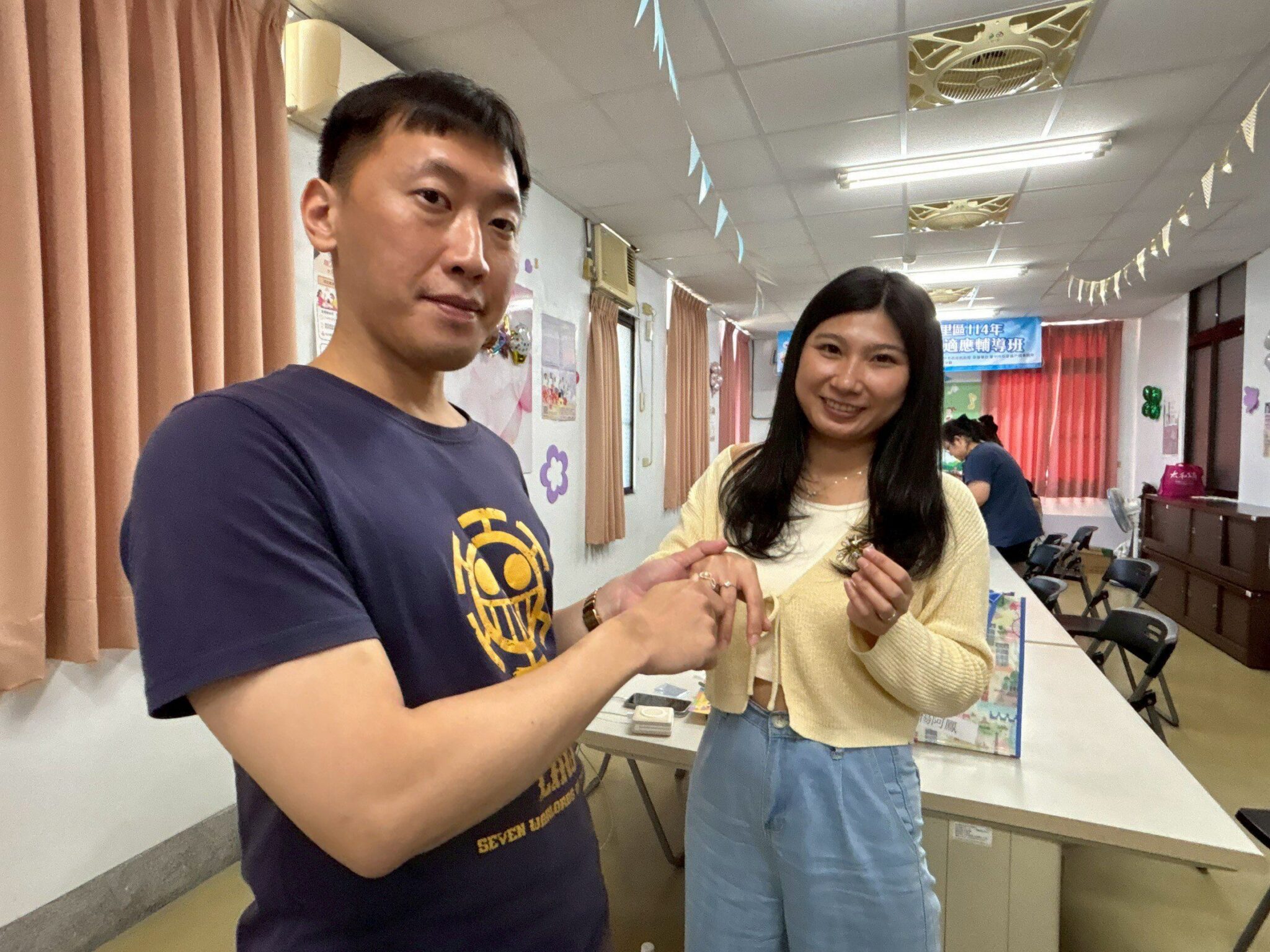 此外,越南籍新住民小玉在金工戒指課程中,特地請老師協助量測丈夫戒圍,引發其他學員好奇。小玉表示,她與丈夫育有一雙兒女,雖育兒辛苦,丈夫卻總是細心照顧與支持,此次課程也由丈夫帶孩子陪伴在旁,她希望將親手製作的戒指送給丈夫表達感謝,甜蜜氛圍感動現場所有人。