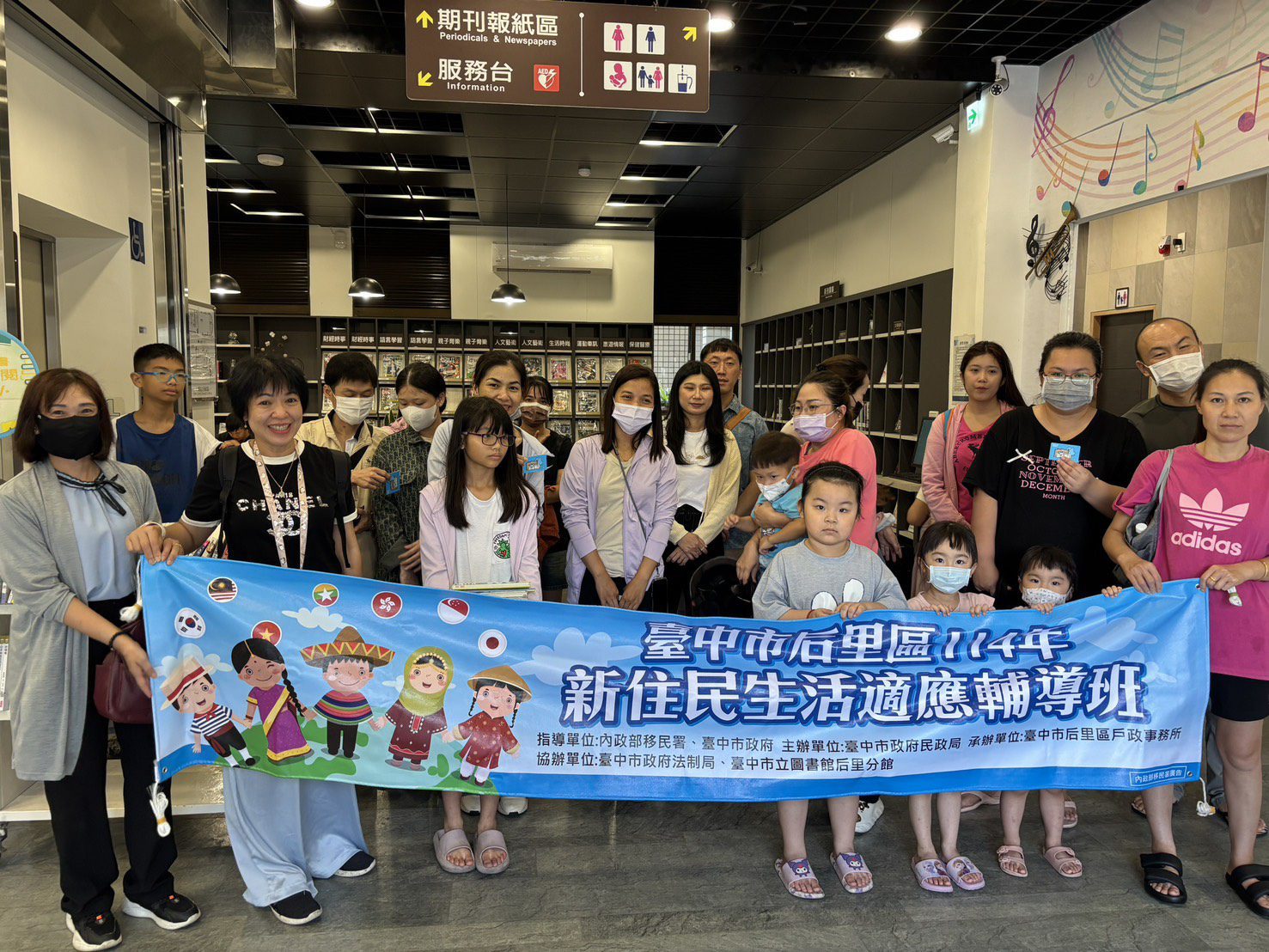 此外,后里戶所也安排新住民參訪台中市立圖書館后里分館,該館近年完成空間改造,增設「音樂主題區」,展現在地文化特色與館藏音樂,並設有多元文化專區,提供越南、泰國、印尼等外語圖書;另「兒童區」同時規劃可愛造型入口、親子廁所及哺乳室,為親子讀者營造舒適友善的閱讀環境。參訪當天,新住民家庭踴躍辦理人氣超高的咖波聯名借閱證,期盼學員們持續養成閱讀習慣,累積知識能量,讓生活更加充實美好。