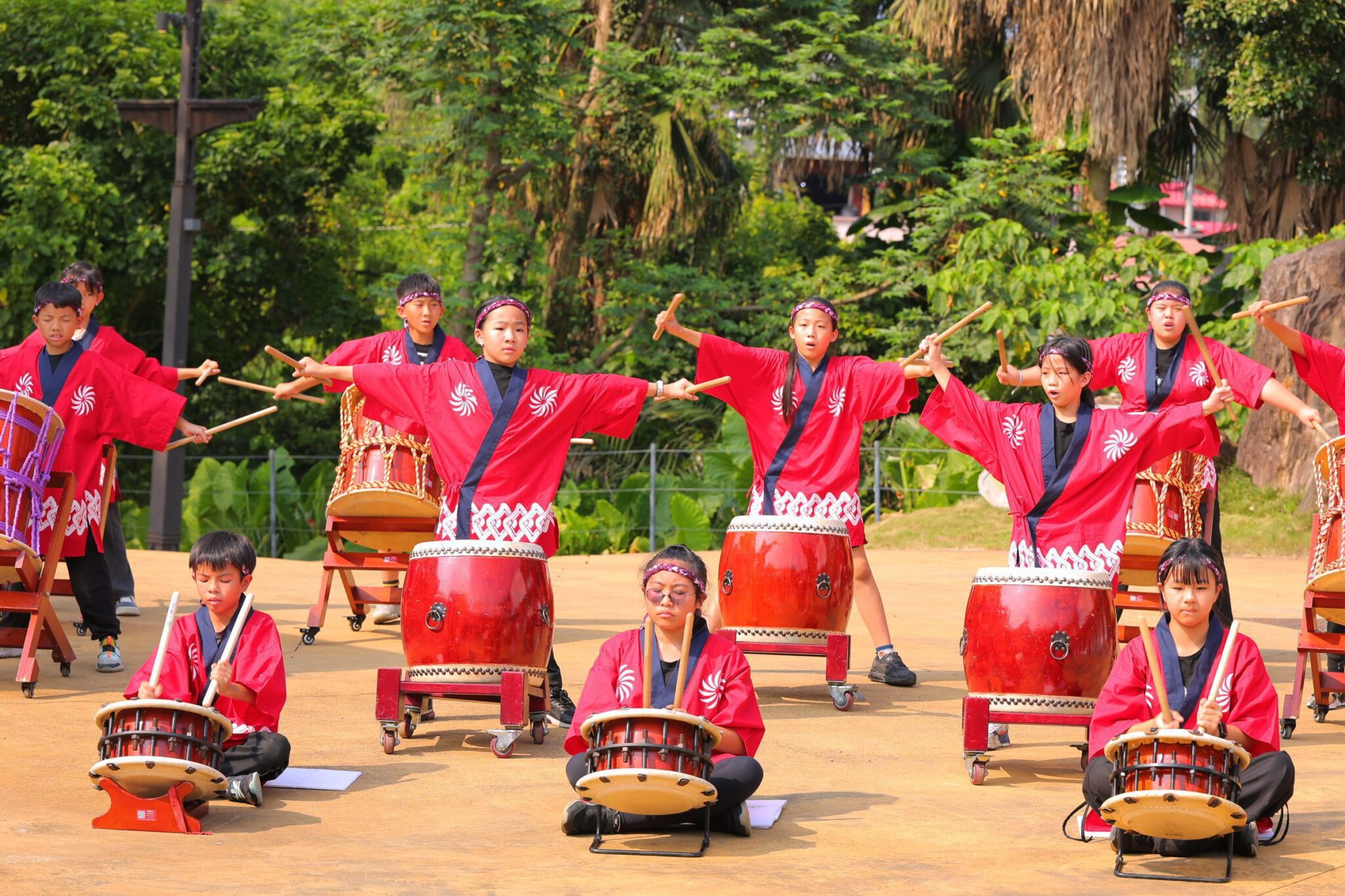 活動開場由仙洞國小太鼓隊以磅礡節奏揭開序幕,展現基隆學童蓬勃朝氣。除展覽外,現場同步啟用燈光裝置藝術《旭光之心・四時光》,以光影變化演繹「旭丘晴嵐」、「旭崗日出」等意象,四道不同光暈象徵旅人駐足留下的故事與記憶。此外亦設有黑板共創區,邀請親子與旅人自由揮灑創意,重現童年塗鴉的純真時光。