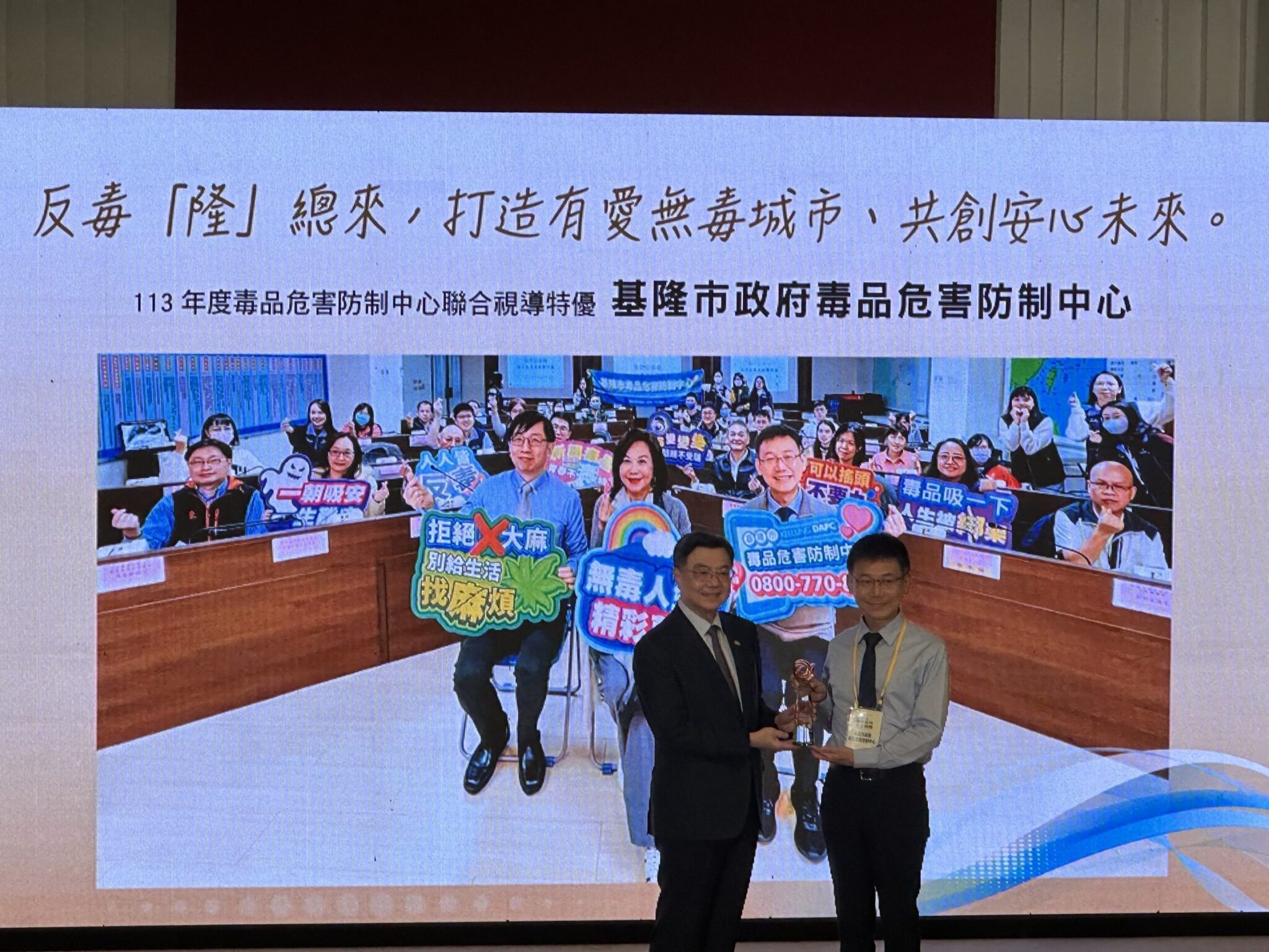 基隆市政府毒品危害防制中心持續展現卓越防毒反毒佳績,在全國競爭激烈的「113年度毒品防制聯合視導考評」中,連續兩年脫穎而出,榮獲「特優」縣市殊榮。於今(24)日在國家圖書館舉行的「114年反毒有功人士團體頒獎典禮」,由總統賴清德親自主持,基隆市衛生局局長張賢政代表領獎,獲行政院長卓榮泰公開頒獎表揚。反毒工作需要縱向與橫向的跨局處合作,是謝國樑市長帶領各局處及毒防網絡夥伴的共同努力,並結合地檢署、法院、醫療院所及各民間團體的協力,形成全面而有效的防制網絡。