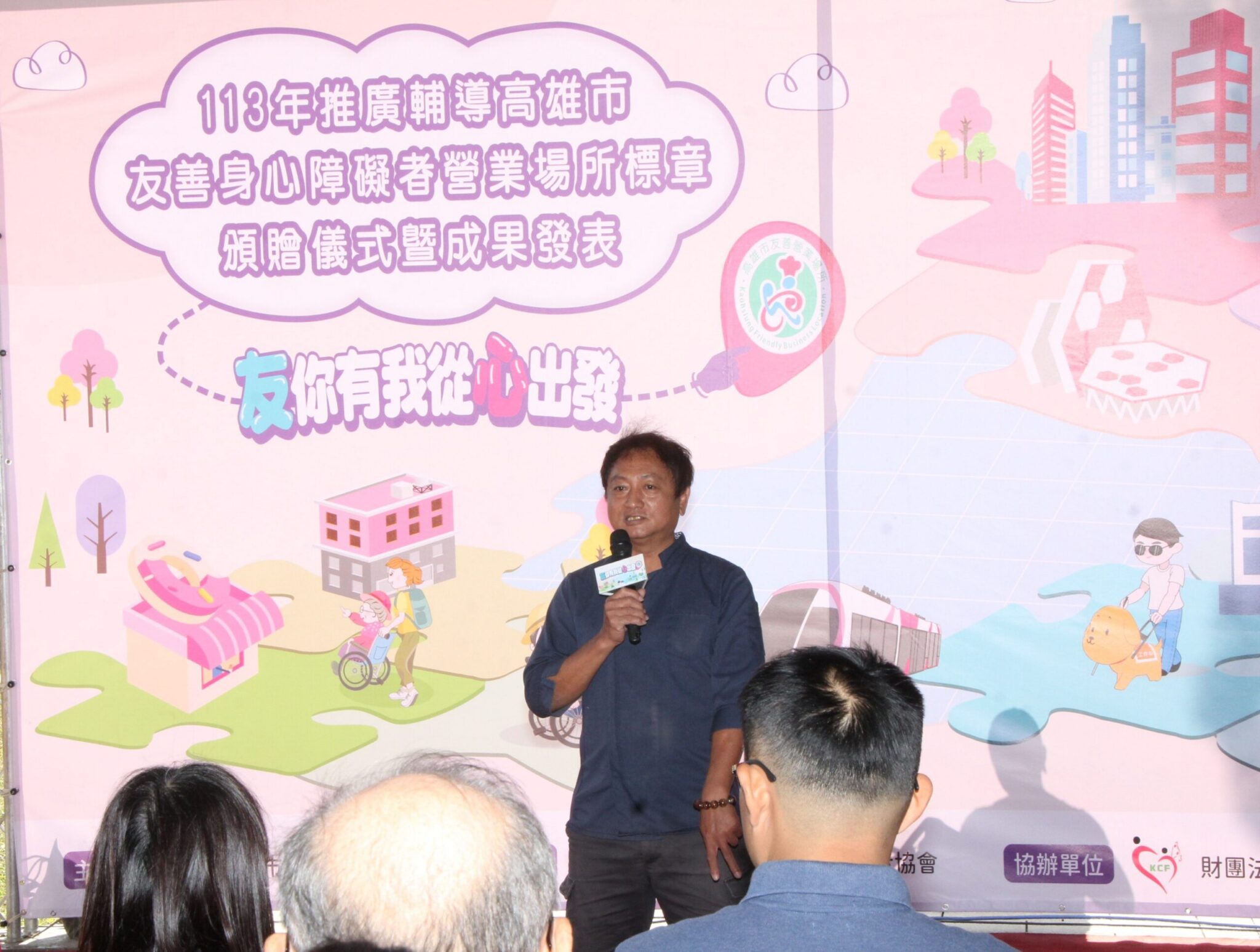 身心障礙朋友的平權共融及生活品質,一直是高雄市政府施政的重要目標。透過公益彩券盈餘基金的運用,高雄市社會局與社團法人高雄市脊髓損傷者協會攜手推動「友善身心障礙者營業場所計畫」,今年續增40家中小型餐廳及商店,使高雄市增加至271家友善營業場所。11日上午於台塑王氏昆仲公園辦理宣導活動並頒發友善營業場所認證書,這些場所不僅提供身心障礙朋友更多的生活便利,更落實了國際身心障礙者權利公約(CRPD)「平等參與」、「多元共融」及「通用設計」的精神。