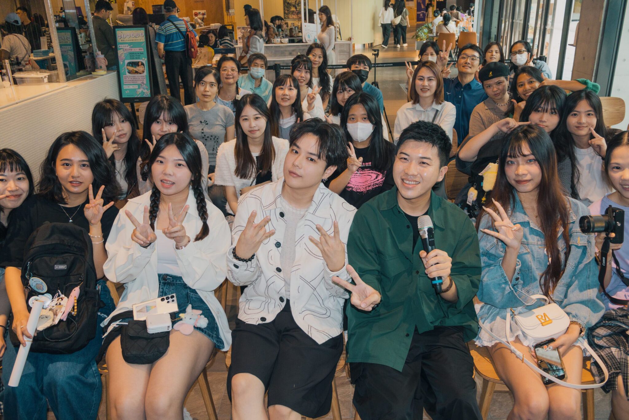 李竺芯(前排左三起)與主持人內克在杰思X誠品Live Podcast《浪漫見杰思me告白》活動上與觀眾互動 照片提供:杰思國際娛樂