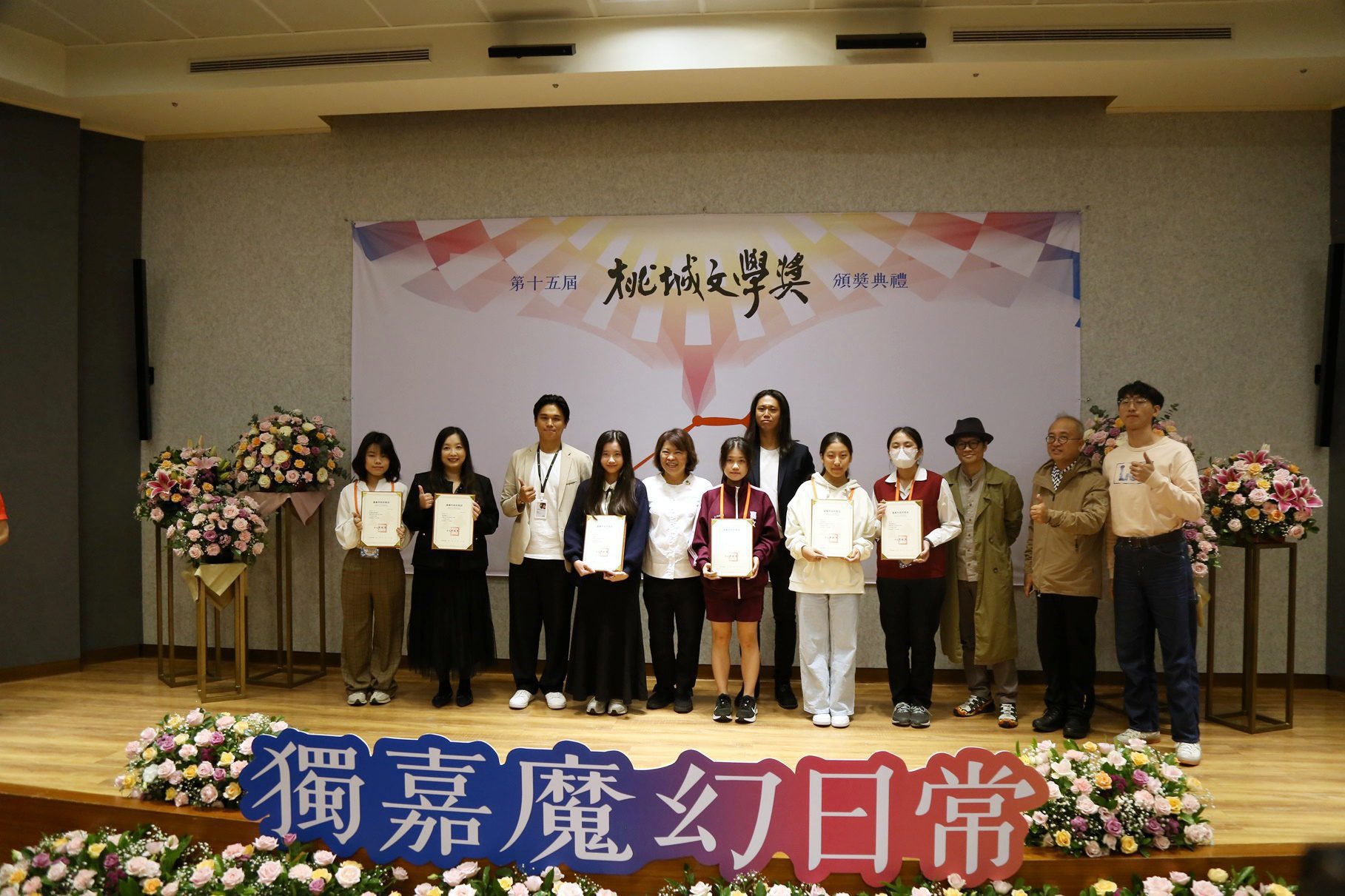 嘉義年度文學盛事——第十五屆桃城文學獎頒獎典禮於今(13)日上午於嘉義市立博物館一樓簡報室舉行,今年桃城文學獎以「桃城文學什光紀:獨嘉魔幻日常」為主題,收件數突破600件,再次創下投稿紀錄新高!共計36件佳作於眾多作品中脫穎而出。市長黃敏惠與聯經總編王聰威和評審黃銘彰、鄭順聰及盧怡安親自為得獎者頒發獎座,並與眾多文學愛好者一同見證得獎者的榮耀時刻。