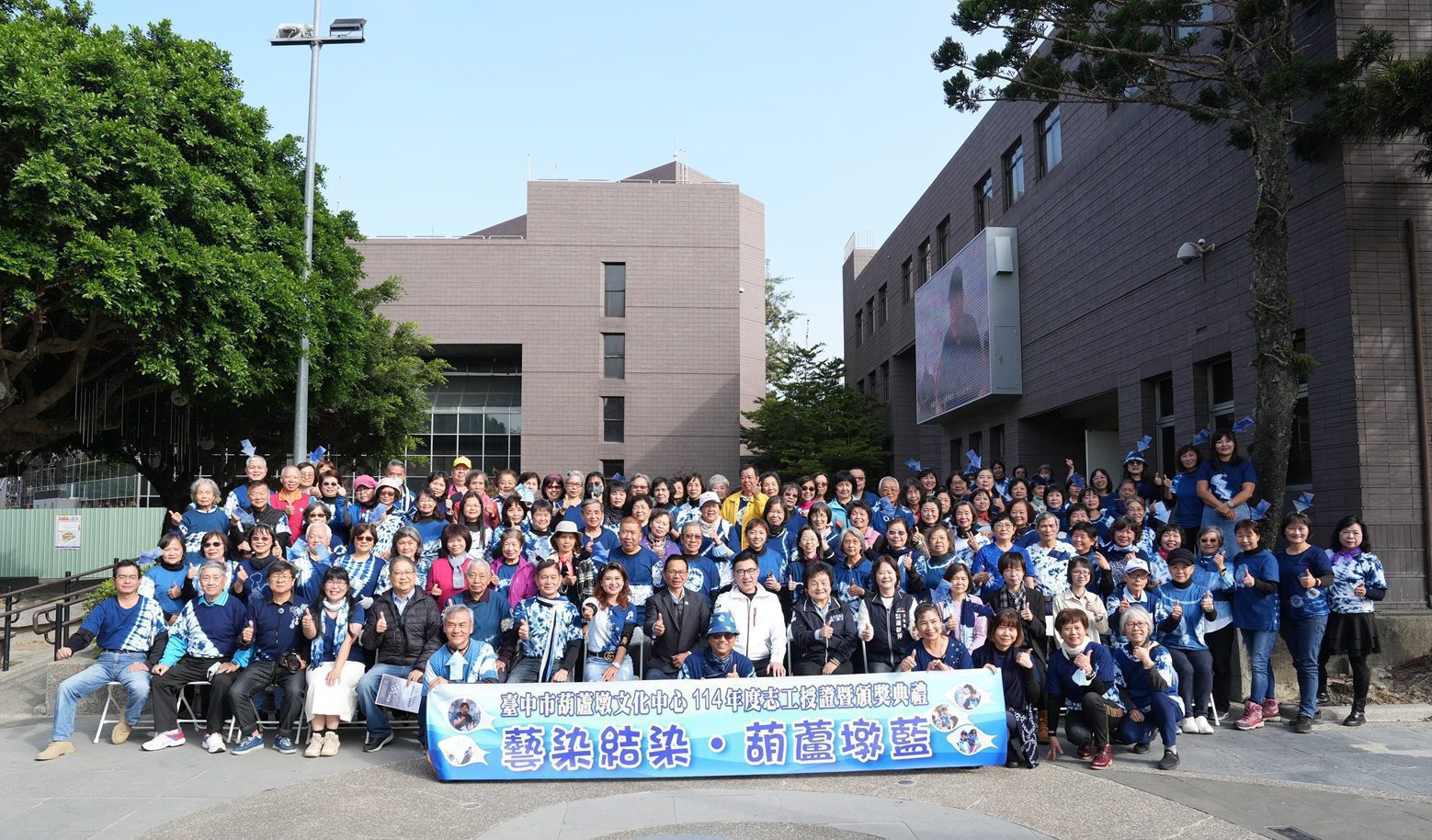 台中市文化志工「愛」的行動成績優異,厚植在地文化成果滿滿!台中市屯區藝文中心及台中市葫蘆墩文化中心分別於昨、今(15)舉行志工表揚暨授證典禮。其中,屯藝夫妻檔志工隊林麗君與陳建平熱心服務達7,000小時以上,今年同時獲得台中市志願服務獎勵一等獎,令人刮目相看;而台中市葫蘆墩文化中心志工隊超過半數服務超過10年,六成以上逾65歲,今年以「藝染結染‧葫蘆墩藍」特色為主題,葫蘆墩志工全數穿上自創藍染圖騰上衣,場面熱鬧非凡。
