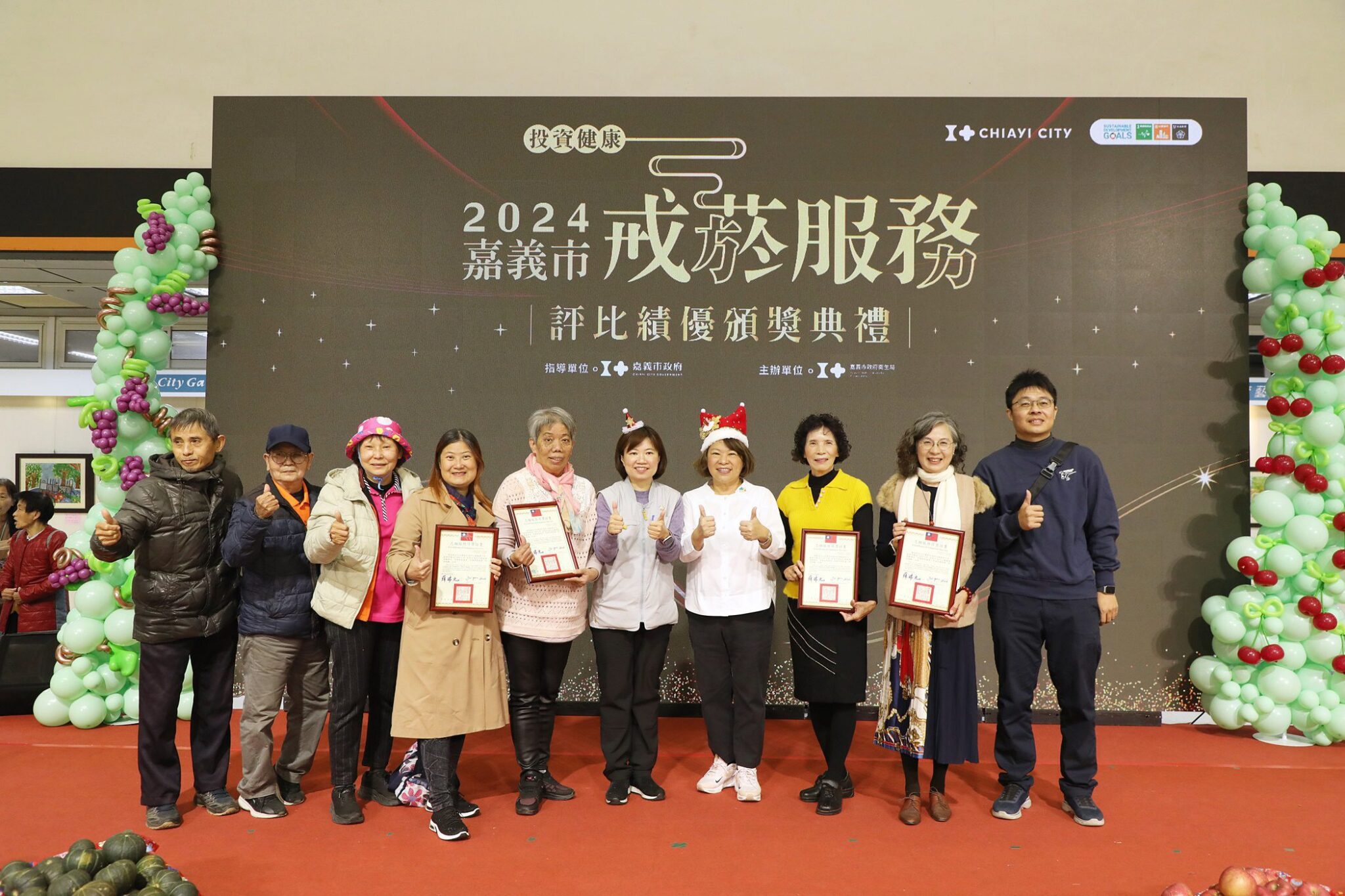 為表揚113年度「戒菸服務」、「流感疫苗接種」績優醫事機構及衛生福利部志願服務獎獎得獎志工,以及戒菸服務人員,秉持熱誠協助無數市民邁向健康人生,嘉義市政府今(16)日於市府中庭舉辦「全嘉龍無菸 健康再+1」頒獎典禮,市長黃敏惠出席頒發獎項勉勵績優醫事機構及衛生福利部志願服務獎勵得獎志工。