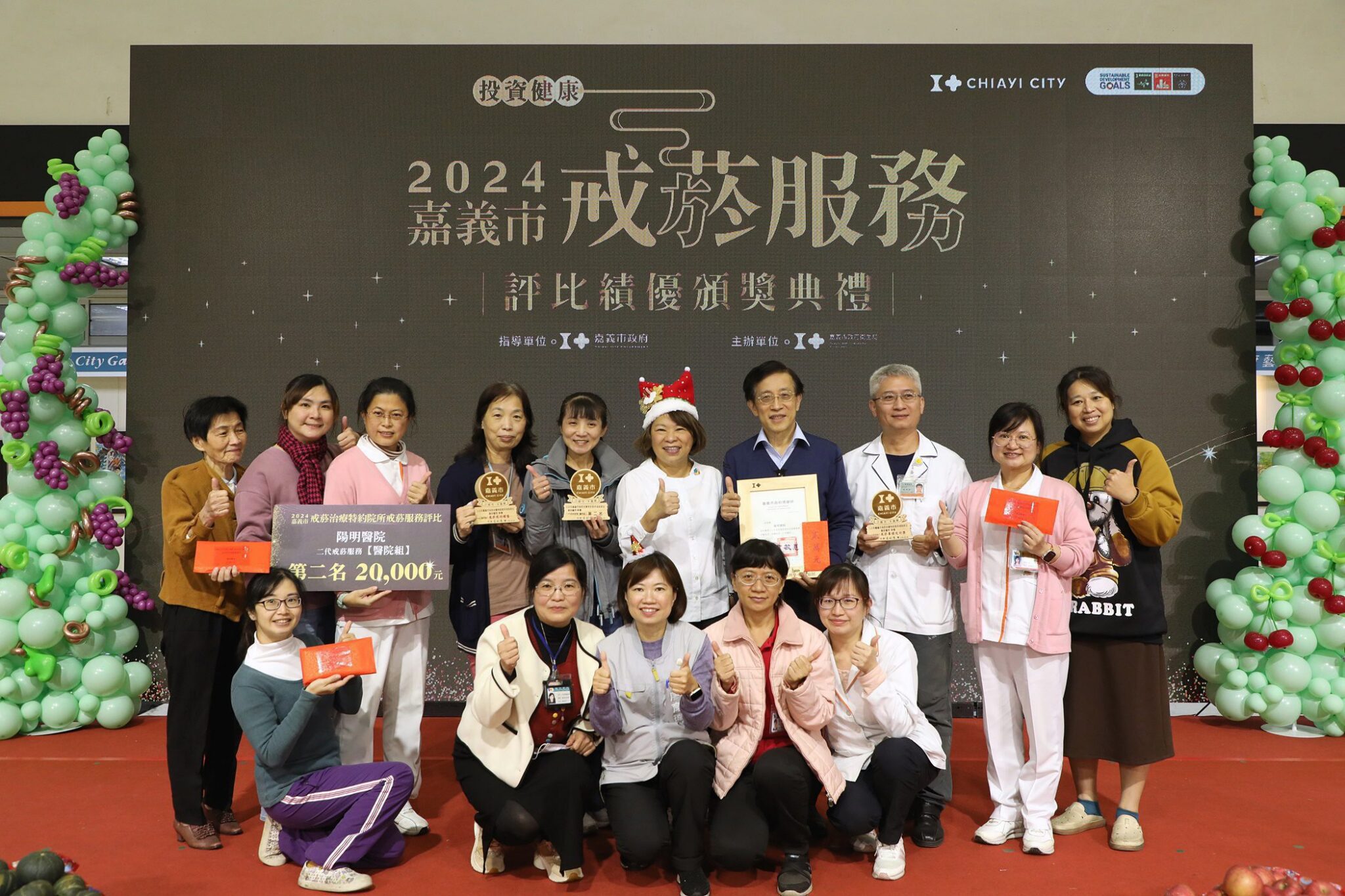嘉義市醫療院所今年提供3,608人戒菸服務,3個月點戒菸成功率為32.4%,謝謝大家守護健康、意義非凡,同時鼓勵民眾,戒菸找專業更能戒菸成功。頒獎典禮上依戒菸門診人數及戒菸衛教人數評比頒發「    二代戒菸服務卓越獎」,得獎單位醫院組有嘉義基督教醫院、陽明醫院、天主教聖馬爾定醫院;診所組有張耿源診所、佑仁診所、安家診所、吳長宗診所、賴瑪莉診所、全安診所;牙醫組由澤任大維牙醫診所獨得;藥局組是晟安藥局、聖心藥局獲獎。「戒菸成功績優獎」得獎單位,醫院組臺中榮民總醫院嘉義分院,診所組佑仁診所;依轉介戒菸專線並實際接受服務評比頒發「戒菸專線成功獎」,得獎單位為陽明醫院及劉耳鼻喉科診所;「   無菸醫院醫事人員戒菸績優服務王」有9人獲獎,感恩健康有您+1。